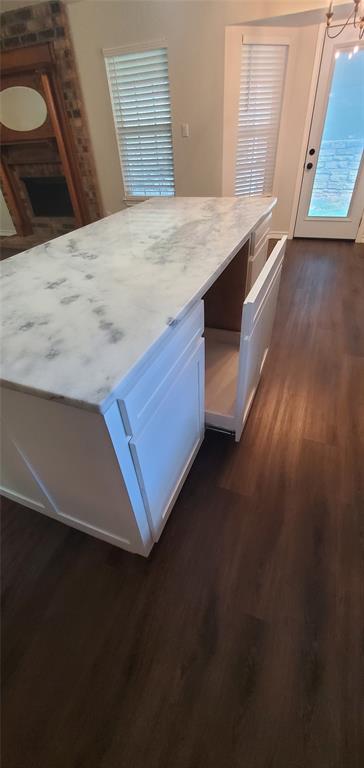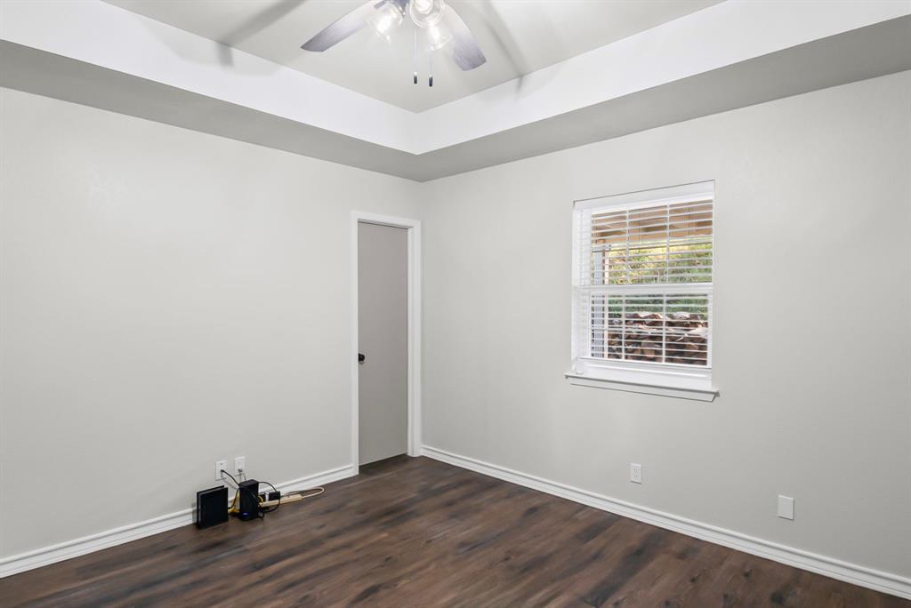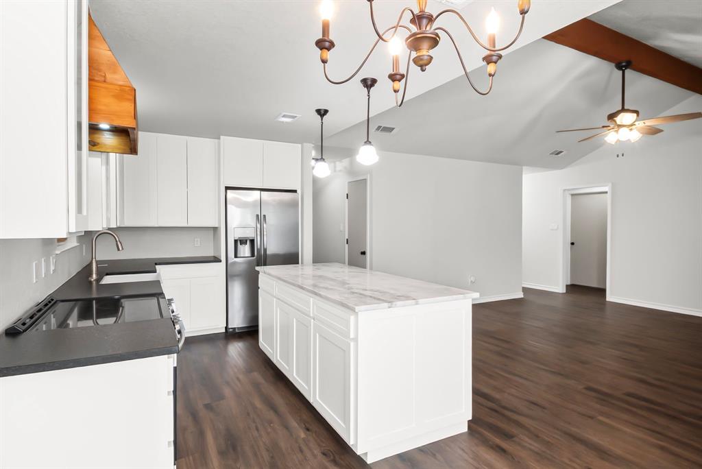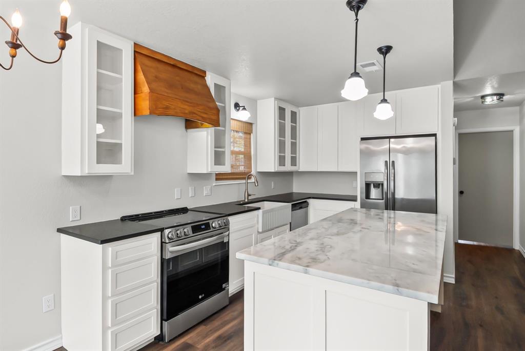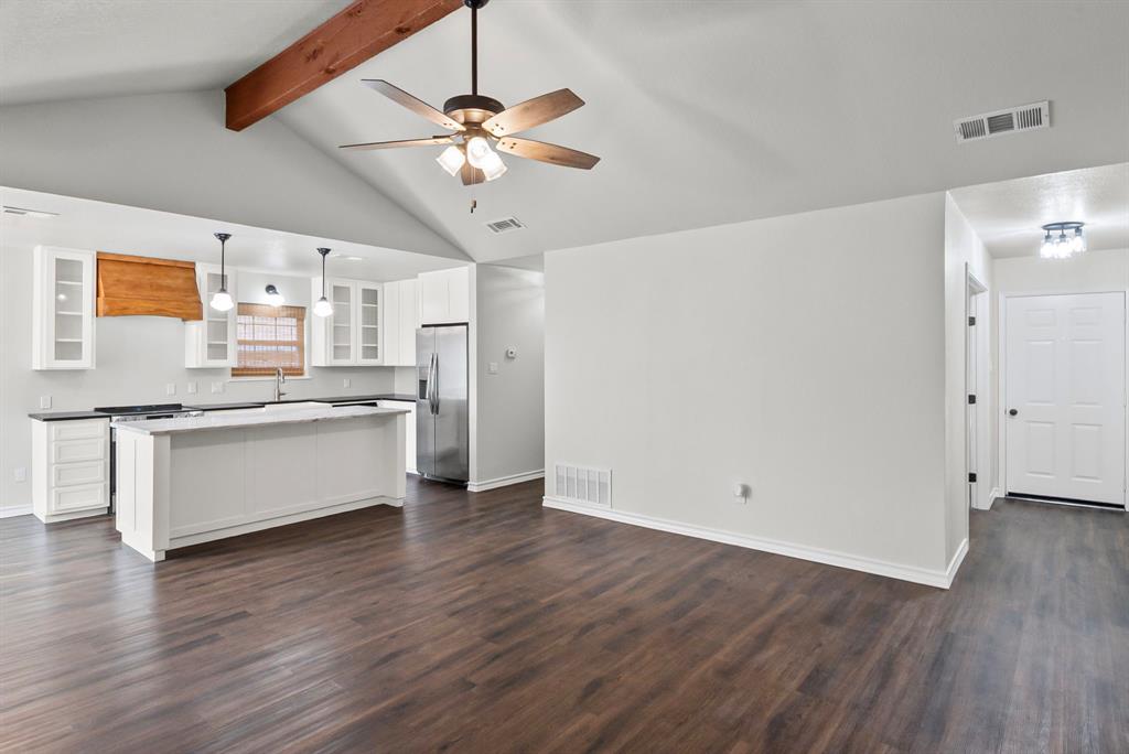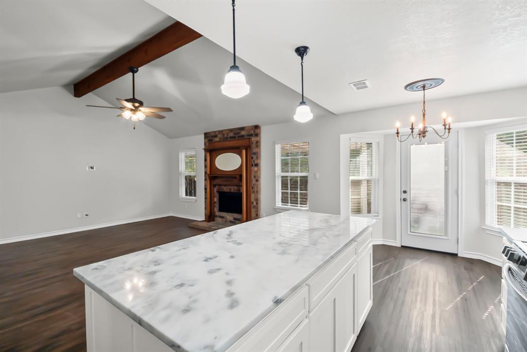 A welcoming, friendly community -- without any HOA restrictions -- in one of Weatherford’s most desirable neighborhoods, the Forest Ridge Addition. Beautiful and recently remodeled 3-bed, 2-bath home sits on an oversized lot with ample room for a pool or RV storage on a cul-de-sac street. Located 1.5 miles from Courthouse Square on the East side of Weatherford with easy access to Hwy 180, Bankhead Hwy, Ric Williamson and I-20. Curb appeal shines with custom wood garage door and manicured yard. Open floor plan features vaulted ceiling and wood-burning fireplace with antique oak mantle. The kitchen boasts stainless appliances, farm sink, granite counters, and a quartz-marble island. Custom cabinetry with hidden garbage, recycling and microwave adds efficiency and style. Natural light fills the home with all new windows and a full-lite glass door. Three flexible bedrooms offer comfort or workspace—one with French doors for easy home-office use. The private back and expansive side-yard invite outdoor living with a 30-foot covered porch and greenbelt behind. Recent upgrades include fresh interior and exterior paint, new attic insulation, new Heat-AC with all new ductwork, new windows throughout, new vinyl flooring, all new light fixtures & fans, custom-wood kitchen cabinets, new roof with hail-wind-resistant shingles with 20-year transferable warranty, new gutters with leaf guards, and French drains on both sides. Close to schools and local amenities in the heart of Weatherford, this stunning home is move-in ready!