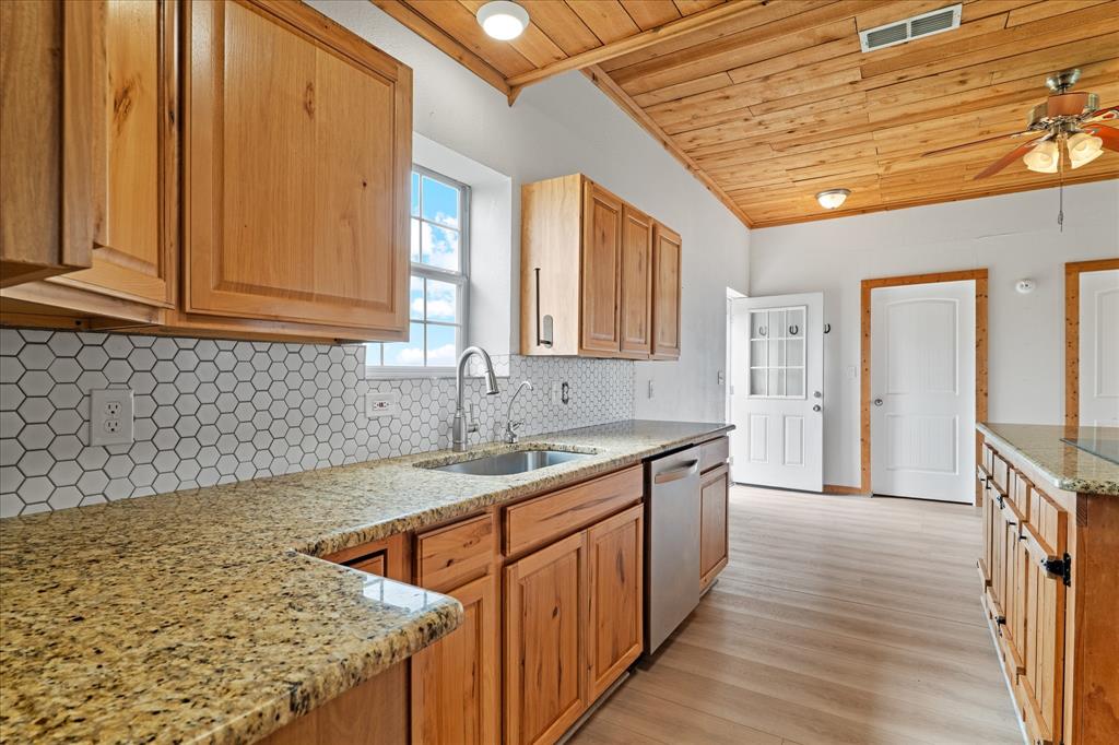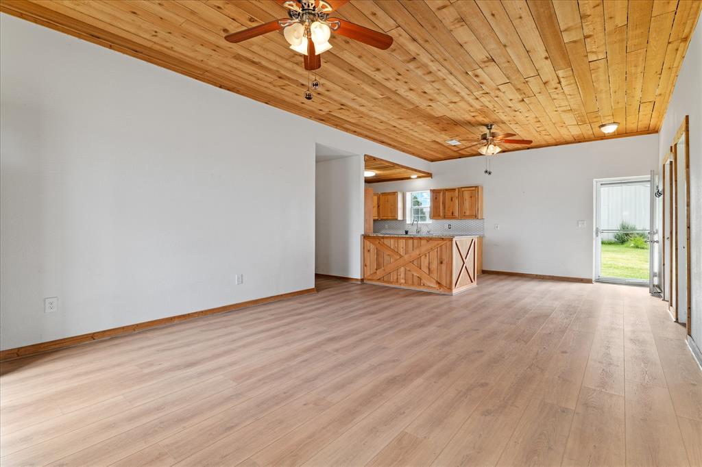 This custom built barndominium style home sits on 8.47 acres. An Agricultural Exemption can be maintained with a Beekeeping exemption, no waiting period. The front home is 1,230 square feet with new Luxury Vinyl Plank flooring, two bedrooms, two full bathrooms, open floor plan that flows into the kitchen with granite countertops, stainless steel appliances, custom cabinets and wood accent ceilings. The 2,430 square foot shop has one bedroom, one full bathroom and a full kitchen with huge open space and lofts. There are two Tuff Sheds for storage. The property is fenced and cross fenced for livestock with No Climb fencing around the perimeter. Enjoy easy access to the Dallas North tollway, close to Tioga schools and Lake Ray Roberts. Bring your horses!!!