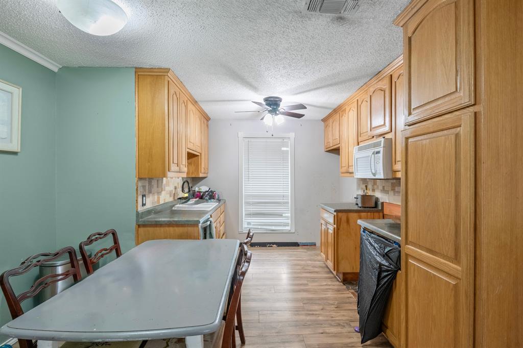 Welcome to this charming and well-maintained 3-bedroom, 1.5-bath home, nestled in an established neighborhood just a short stroll from Old Town Burleson and scenic Bailey Lake trails. Step into the heart of the home—a beautifully updated kitchen featuring custom oak cabinetry, a stylish tile backsplash, deep dual-basin sink, and a recently new dishwasher! The spacious living room flows seamlessly into the breakfast area and kitchen, creating an open and inviting layout perfect for both everyday living and entertaining. Enjoy peace of mind with both bathrooms having been updated in recent years. The main hall bath boasts modern tile, an upgraded vanity, and sleek faucets, while the primary bedroom features a convenient ensuite half bath with tasteful updates. Outside, you'll find a large two-car garage and a generous backyard complete with a roomy storage shed—ideal for tools, hobbies, or extra storage needs. There's also an old alley behind the property that adds privacy and space between neighbors, though it is no longer accessible by vehicle. Located near a local elementary school, trailheads, and all the charm and dining of Old Town Burleson, this home offers comfort, convenience, and character.