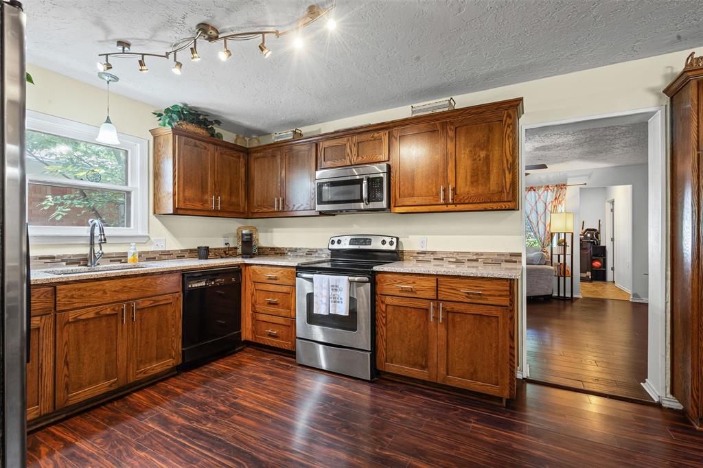 Beautifully updated home in a great location near the Trinity River and the River District restaurant and shops. Situated in a quiet, treed neighborhood within walking distance to the desirable Burton Hill Elementary. The floorplan offers a large, eat-in kitchen, separate dining room, living room, large family room with walls of windows bringing in beautiful, natural lighting, 3 bedrooms & 2 bathrooms. The homes features refinished hardwood flooring, luxury plank wood flooring, granite countertops, upgraded hardware, lighting & fixtures, remodeled bathrooms, remodeled kitchen with built-in stainless steel appliances, granite countertops & glass tile backsplash, wood & chain link fence. The large backyard has a large, covered patio & a storage building. The one car garage is enclosed but could be converted back to a garage. THIS BEAUTY HAS IT ALL! Welcome home!