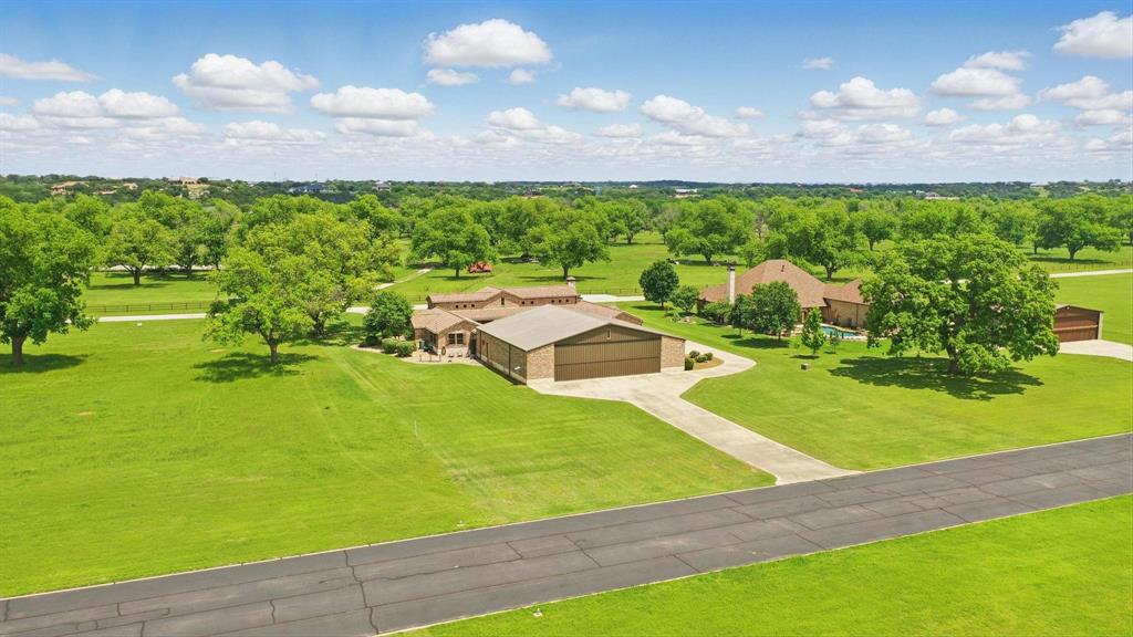 Stunning 3,782 sq ft Mediterranean-inspired home located in the highly desirable Driftwood Ranch, a gated community with private access to the Brazos River and community airpark. This custom 4-bedroom, 2-bath residence offers elegant design, spacious living, and rare amenities. This home features warm stucco finishes, tile roofing, and beautiful flooring that highlight the Mediterranean charm throughout. At the center of the home, a beautiful courtyard with a pool creates a serene and private outdoor space perfect for entertaining or relaxing. Inside, enjoy a spacious living area with abundant natural light, a well-appointed kitchen, and 4 bedrooms as well as a dedicated office that offers flexibility for guests or a growing family. A standout feature of this property is the impressive 60' x 65' hangar, complete with a fully automated door and direct access to the community runway—ideal for aviation enthusiasts. The hangar also includes a full bathroom, making it perfect for guest use or entertaining during hangar events. Driftwood Ranch offers a unique lifestyle with a blend of luxury, privacy, and convenience for pilots, outdoor lovers, and those seeking a truly distinctive home in a luxury community. Rare opportunity to own a fly-in property with river access, just a short drive from the Metroplex.