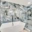 The primary suite is a private retreat, showcasing a spa-inspired bathroom with a freestanding soaking tub, a spacious walk-in glass shower, and dual vanity sinks with premium finishes.