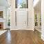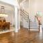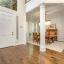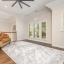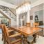 A broad entry sets the stage, flanked by formal living and dining areas highlighted by a captivating modern chandelier with a coordinating fixture in the dining room. Hardwood floors flow seamlessly throughout the downstairs and up the curved staircase, while elegant tile graces the wet areas for a sophisticated balance of style and practicality. Just beyond, walls of floor-to-ceiling windows frame views of the sparkling pool and spa, filling the family room with natural light. Anchored by a dramatic fireplace on one end and the open chef’s kitchen on the other, this space is the true heart of the home.