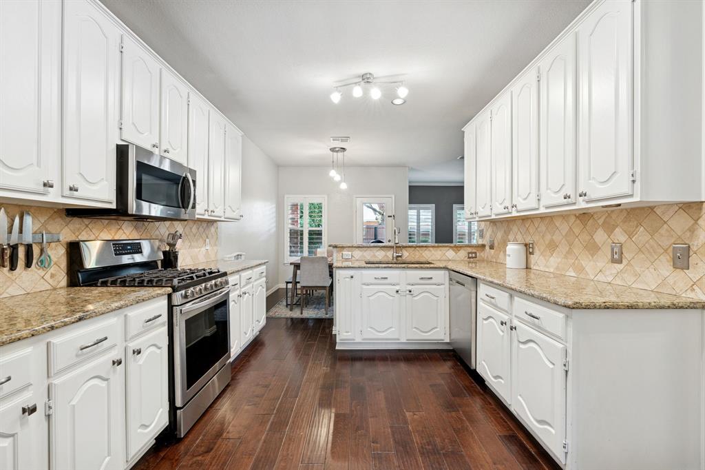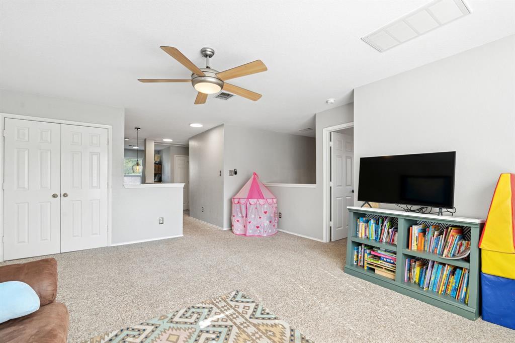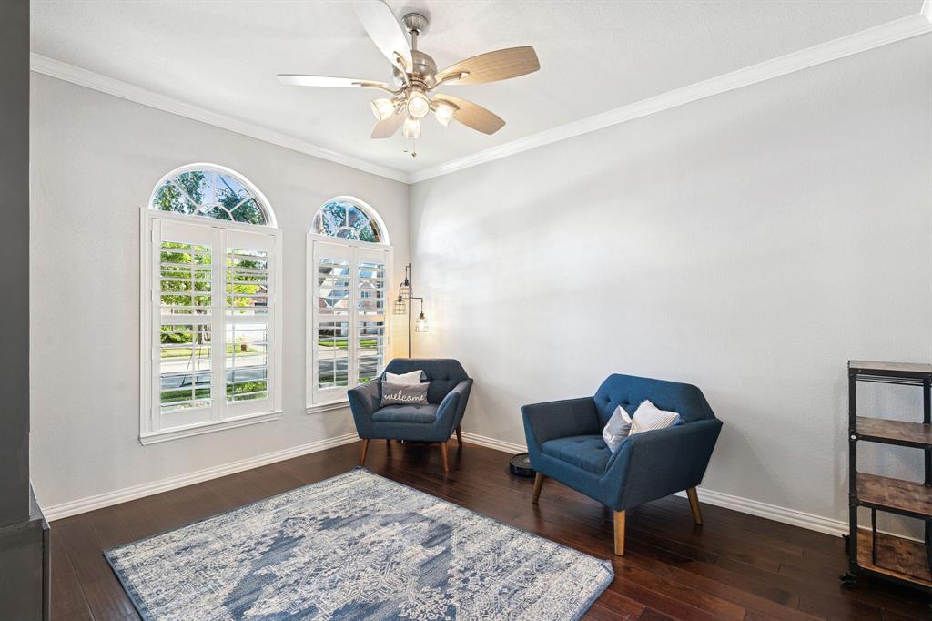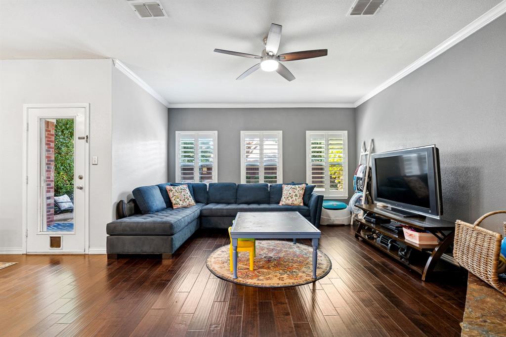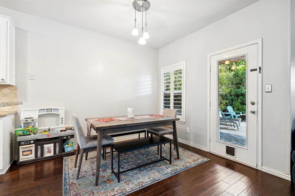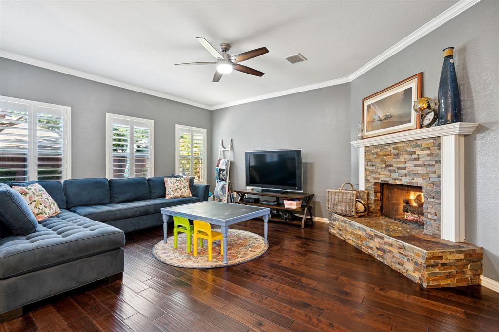 These don't show up often! This 4 bedroom, 2.5 bath with an amazing pool and patio right in the heart of Flower Mound has tons of upgrades that include Plantation Shutters, Wood Floors, Granite Counters, Freshly painted, Custom Wall Finishes and did I mention the amazing Pool and Patio area in the backyard that's has extended patio areas perfect for entertaining? Large open family room with a gas log fireplace and plantation shutters to enjoy the view of the pool and backyard. 2 story entry next to the dining room that could be used as an office and the kitchen has plenty of cabinets and breakfast bar next to the 2nd dining~bkfst area. Large Gameroom is upstairs with all secondary bedrooms for privacy and there's a large loft or office area at the top of the stairs for homework desks or home office. Primary has a great view of the pool and patio and features dbl vanity, large walkin and separate tub and shower. Storage shed in backyard is included. Don't miss out on the opportunity to be located walking distance to the schools and minutes from tons of dining at the Shops of Highland Village, Riverwalk Flower Mound and all along the 2499 corridor.