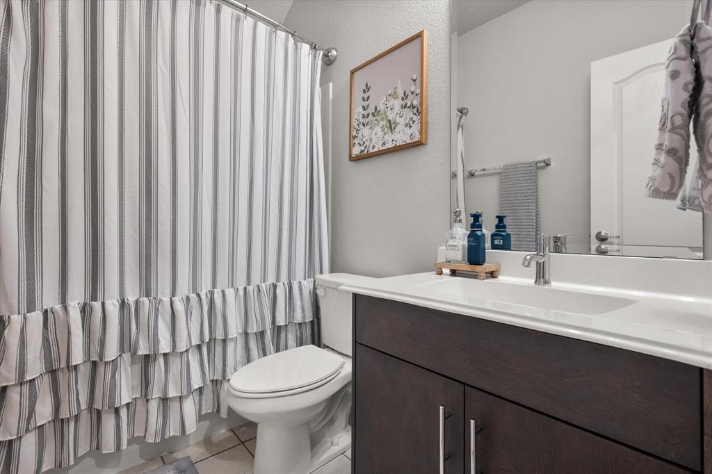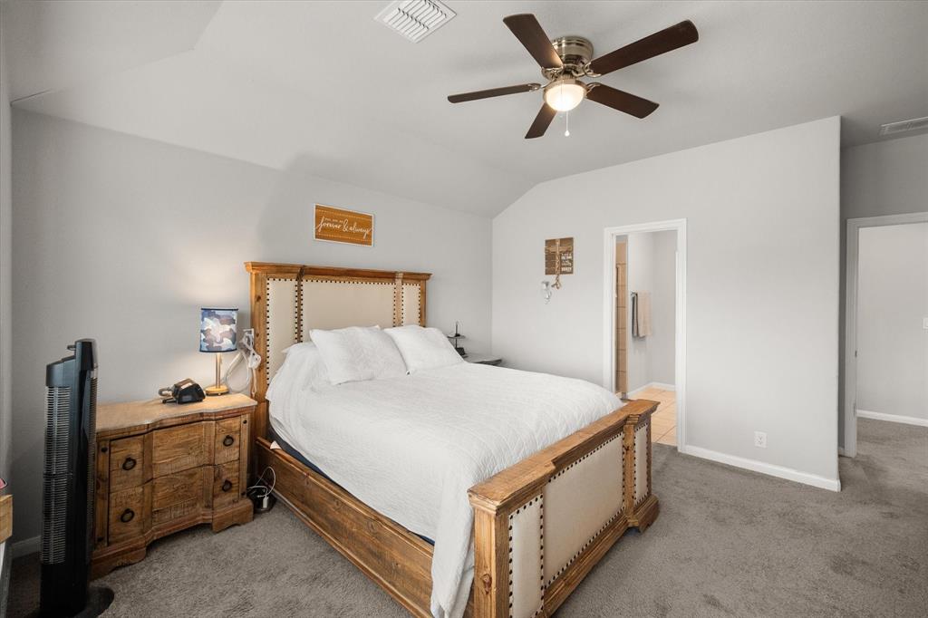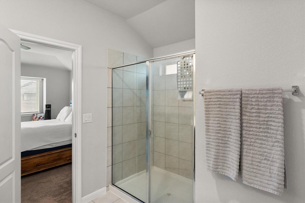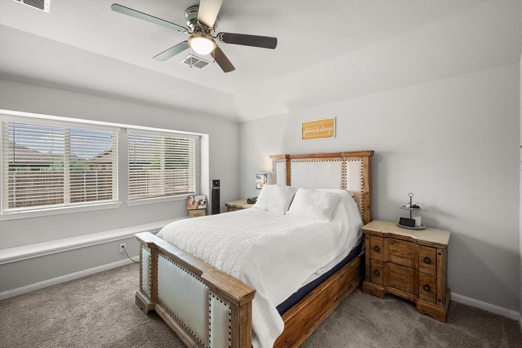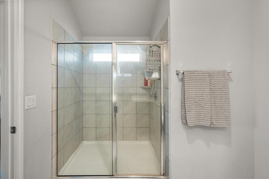 The private primary suite is separate from the secondary bedrooms and offers a large walk-in closet and a spacious shower. Additional upgrades include blinds, ceiling fans, and a garage with a 220 outlet.