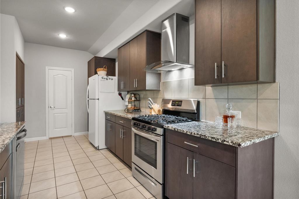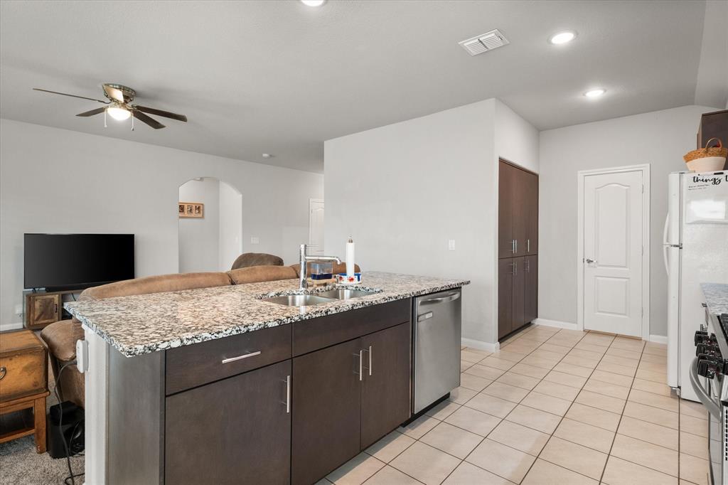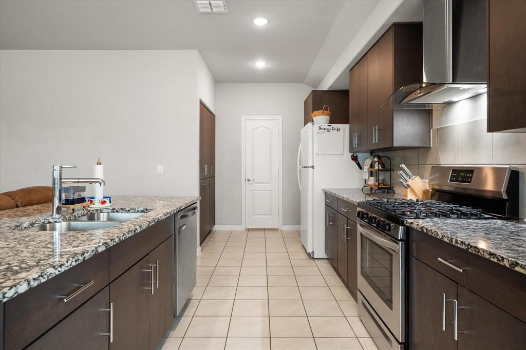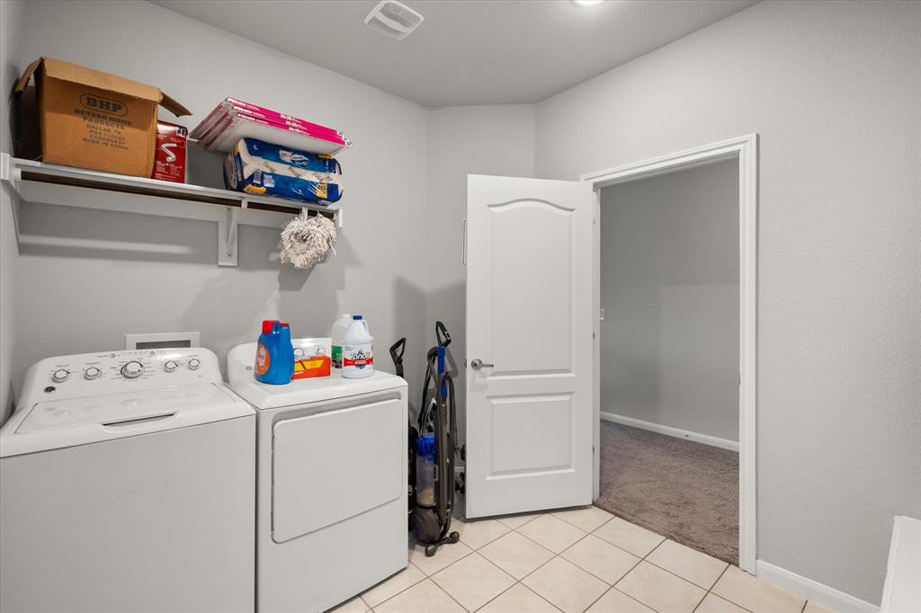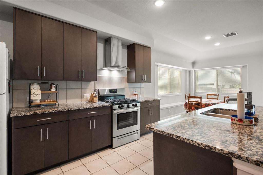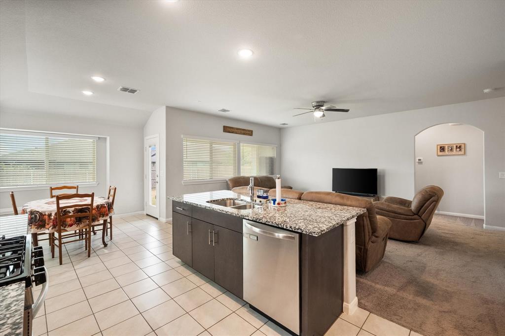 Welcome to this beautiful 3-bedroom, 2-bathroom home built in 2021! Step inside to a wide entry that opens to a spacious open-concept living area featuring a large island, granite countertops, gas range, extra cabinetry, and a walk-in pantry. The oversized utility room doubles as a mudroom with built-in hanging rods and hooks for added convenience.