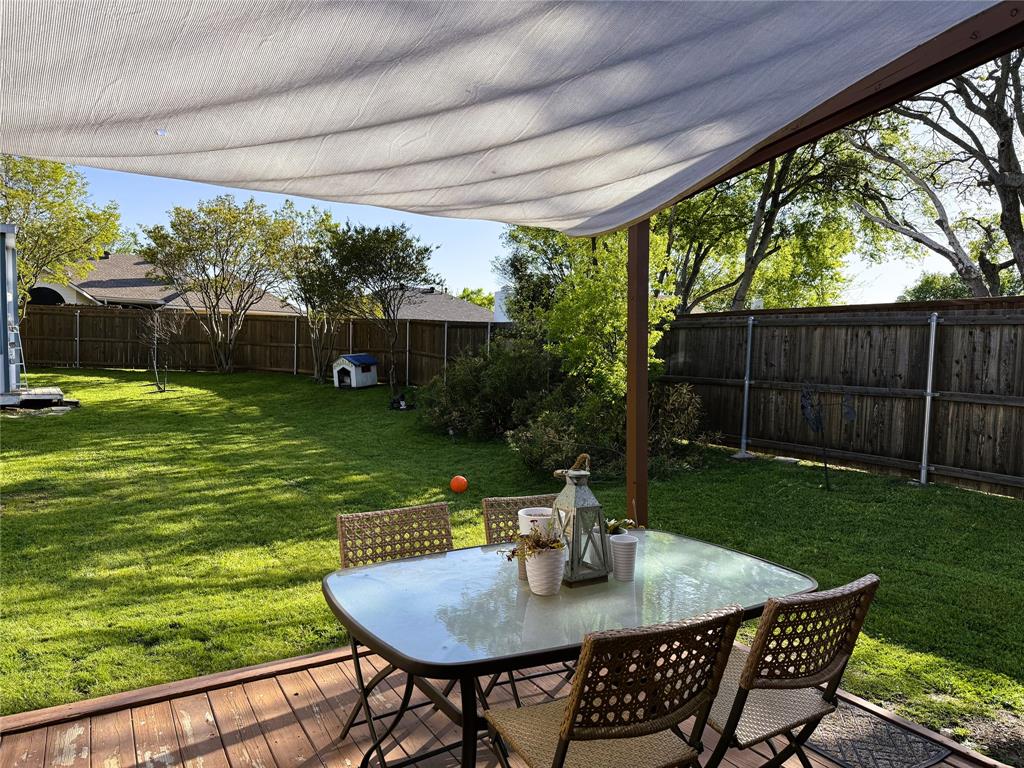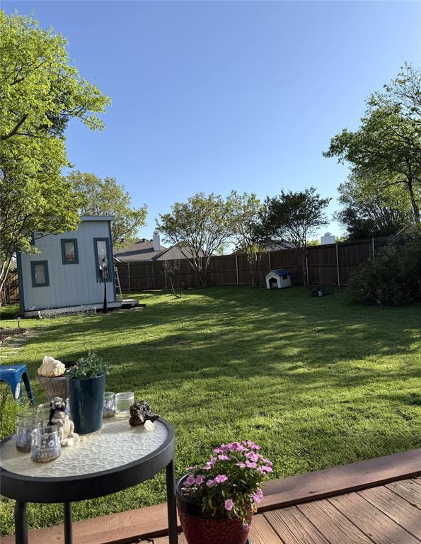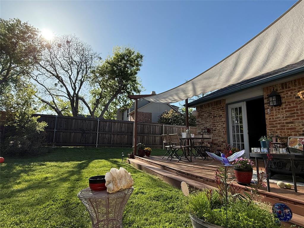 Amazing opportunity to live in a quiet, safe neighborhood of The Colony. Just 3 homes down from Bill Allen Park & soccer fields. This remodeled home has everything you need to live comfortably with your family. Open concept living area with high ceilings. New luxury vinyl flooring, master bath has new shower with travertine tile. New lighting fixtures installed 2021. New HVAC installed 2024. New Arquitectural roof 2017. Fresh paint and fence 2021. Lots of natural light. Large garage with long driveway. Beautiful private large backyard with your own custom shed with electricity that can be used as an office, she shed, playhouse. Large master with walk-in closet & ensuite bath with double vanity. Google nest thermostat, smart Blink cameras, keypad for front door. Only 5 min. from Grandscape, 15 min to DFW airport, 10 min to the Legacy Shops. No carpet. Custom built in bookcase. Will consider leaving washer and dryer and refrigerator with full offer. Ready to move in, do not miss out.