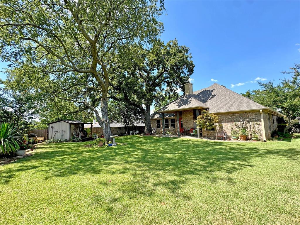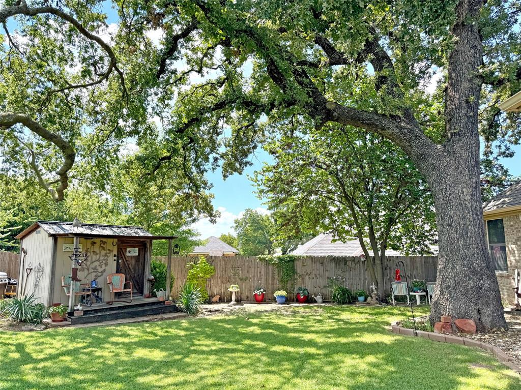 Tucked away in the tranquil Rodden Estates neighborhood, this well-kept ranch-style home blends classic charm with modern convenience. The thoughtful layout features wide doorways for easy access, soaring vaulted ceilings, and refined crown molding that add a spacious, elegant feel. At the center of the home is a warm and inviting living room with beautiful herring bone floors, and a traditional wood-burning fireplace—ideal for cozy evenings. The kitchen is both stylish and practical, showcasing granite countertops and custom inlaid tile work. Recent updates include a newer Trane HVAC system (2024) and a newer roof (2023), offering long-term reliability, comfort, and peace of mind. Outside, you’ll find a peaceful, fenced backyard sanctuary, complete with frequent hummingbird visitors and the majestic presence of a 300-year-old tree. An additional outbuilding offers flexible space for storage or a workshop. Every inch of this property has been lovingly maintained, inside and out! A clean Zoysia lawn and stone surround front garden beds add to the stunning curb appeal. Whether you’re relaxing in your serene outdoor space or enjoying the refined comfort indoors, this home is a rare find and ready to welcome its next owner for years of peaceful enjoyment. This property is conveniently located near all the amenities you'll require, and is a short drive to historic downtown Decatur. Come quick!