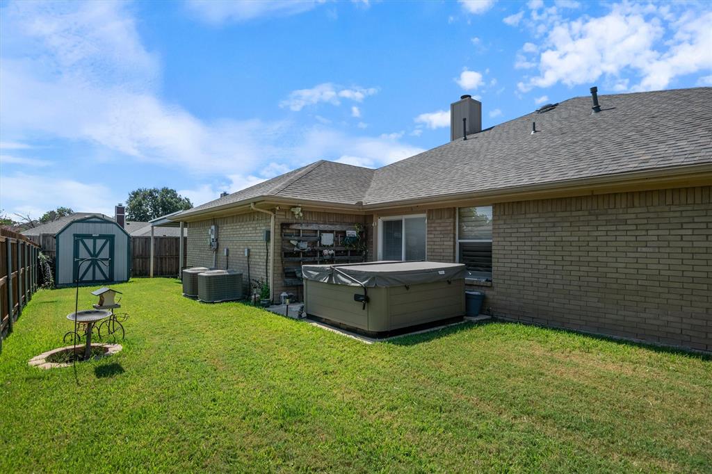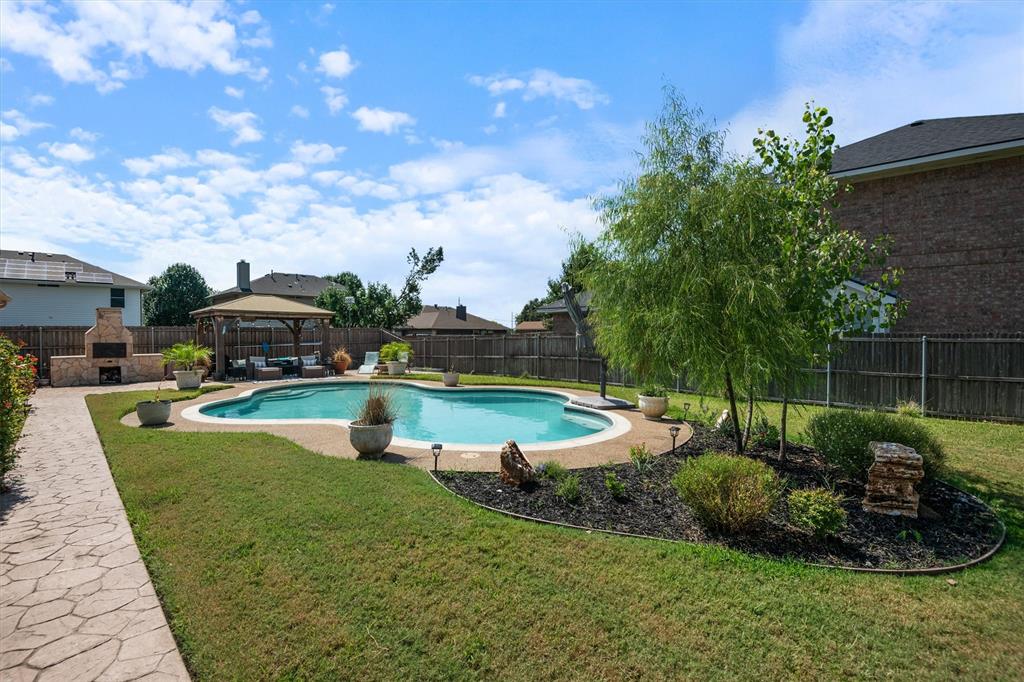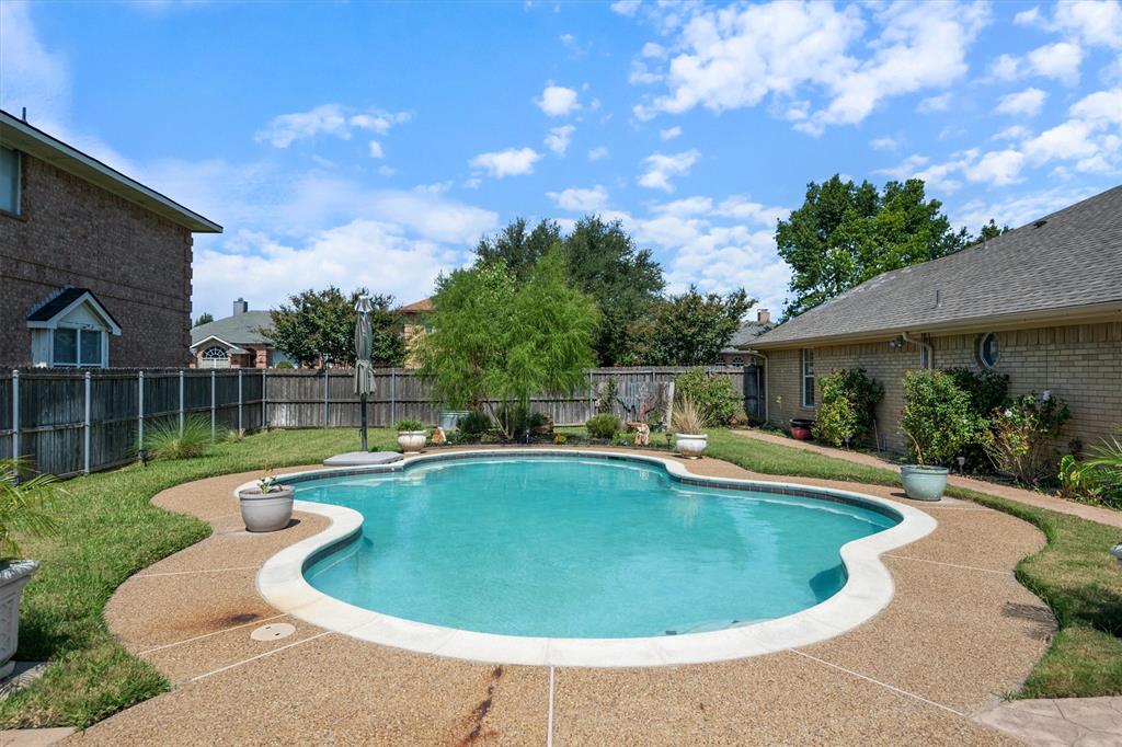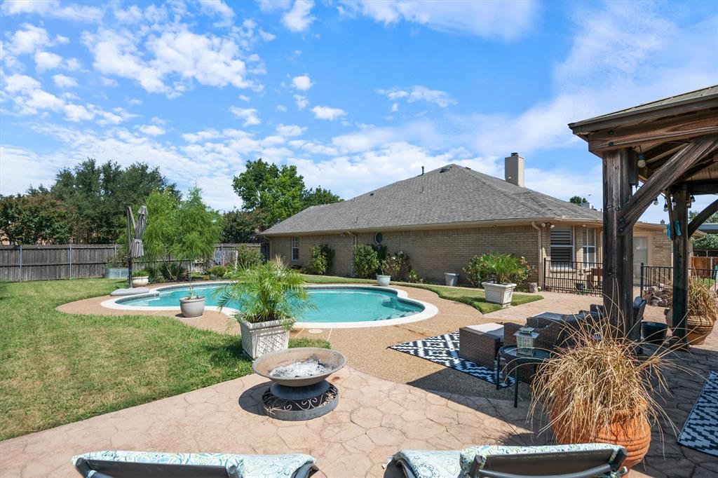 Experience the Charm & Sophistication of this Meticulously Maintained 4-Bedroom, 2-Bath residence on a double lot in Mesquite, TX. With abundant space both inside & out, this Home perfectly combines Superior Design & Exclusive amenities suited for today's discerning homeowner. Step inside to discover a thoughtfully designed layout featuring two expansive Living Areas & two Dining spaces that cater to both casual gatherings & elegant entertaining. The Kitchen is a true Culinary Delight, boasting fresh Quartz Countertops, updated backsplash & freshly painted cabinets that provide ample storage & style. The Spacious Breakfast area is perfect for morning coffee, while the Island Kitchen ensures meal prep is a breeze. Plantation shutters throughout along with beautiful wood flooring in the living areas add to the Superior Design. The Guest Bath features a Walk-in Shower, enhancing Comfort & Luxury. The Primary Suite impresses with a Custom Closet System, ideal for efficient storage. An expanded Laundry Room with cabinets and a convenient countertop for folding exemplifies the home's attention to functional detail. Outside, enjoy Texas evenings under a charming Pergola equipped for dining & relaxation, alongside a Custom Wood-Burning Grill perfect for outdoor cooking enthusiasts. The stunning Pool offers a refreshing escape during summer months, surrounded by ample space for play and gardening along with a Hot Tub that will convey. The property is enhanced with a full Sprinkler System & Gutters for ease of maintenance. Parking is plentiful with a 3-car garage and an additional 3-car attached carport. An electric gate entrance from the alleyway ensures Privacy & Security. This home is an Oasis of Comfort & Style, conveniently nestled in a Vibrant Community while offering a Private Sanctuary to unwind and entertain. Perfectly positioned to blend Suburban Living with unparalleled amenities, this property is a RARE FIND in Today's Market. Schedule your showing TODAY!