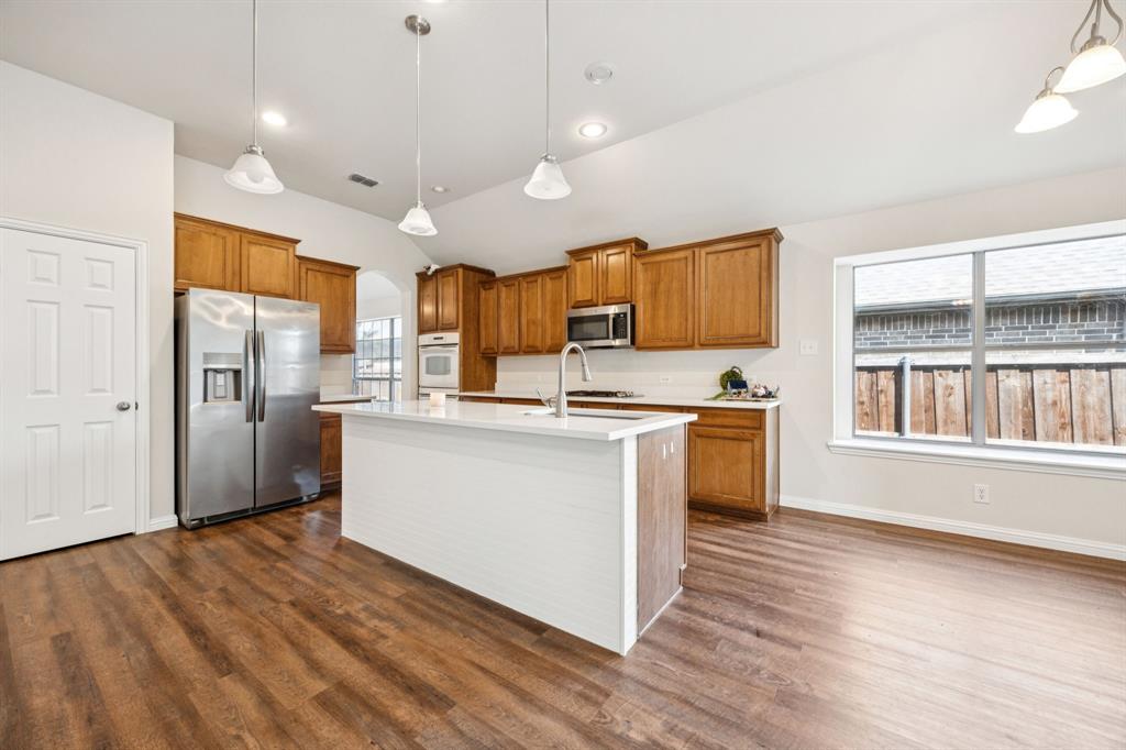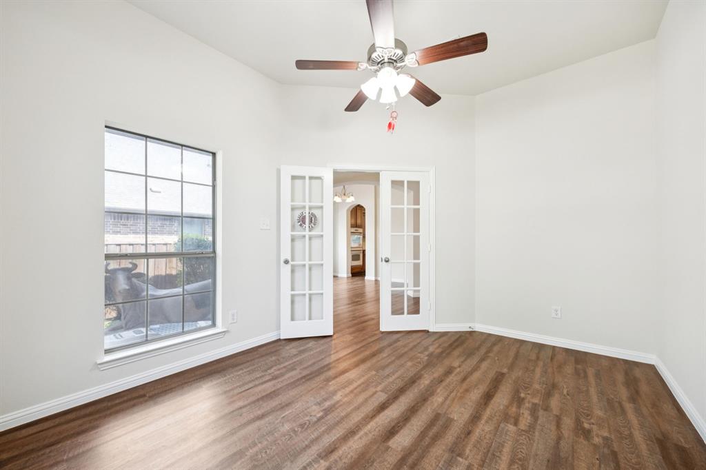 Tucked into the heart of the popular Liberty community, this 3-bedroom with a private study offers a blend of fresh updates, thoughtful design, and everyday comfort. From the moment you step inside, you'll notice the airy flow of the open floor plan. Wide-plank luxury vinyl flooring runs throughout the home and is complemented by a full interior repaint that feels crisp and move-in ready. In the kitchen, sleek quartz countertops make an immediate impression, while the gas cooktop, double ovens, and generous storage make both daily meals and special gatherings a breeze. The split-bedroom layout provides privacy and peace for everyone, and the dedicated study is perfect for working from home or focusing on your favorite hobbies. Step outside, and you’ll find a backyard perfect for unwinding. A screened-in patio lets you beat the summer heat and enjoy the outdoors year-round, while the wood deck is perfect for backyard BBQs with friends and family. As part of the Liberty community, you'll have access to a resort-style pool, clubhouse, multiple playgrounds, winding trails, wide-open greenbelts, and even a stocked fishing pond, making everyday life feel like a getaway. Located within the highly acclaimed Melissa ISD and just minutes from US-75, offering a convenient commute!