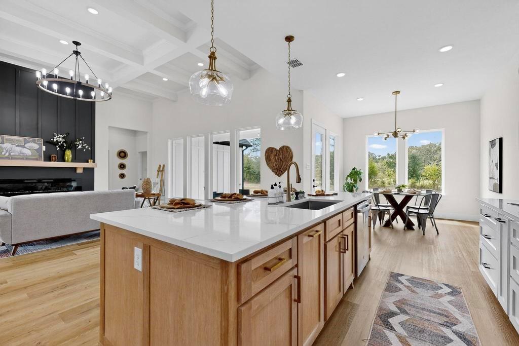 The kids have their own wing of the house with 2.5 baths, giving Mom and Dad the peace they need after a long day of work. The color choices on the floors and walls make it look like a professional interior designer had a hand in it. Who knew the builder had Property Brothers, Drew & Jonathan Scott vibes!