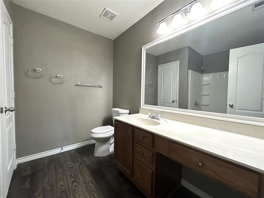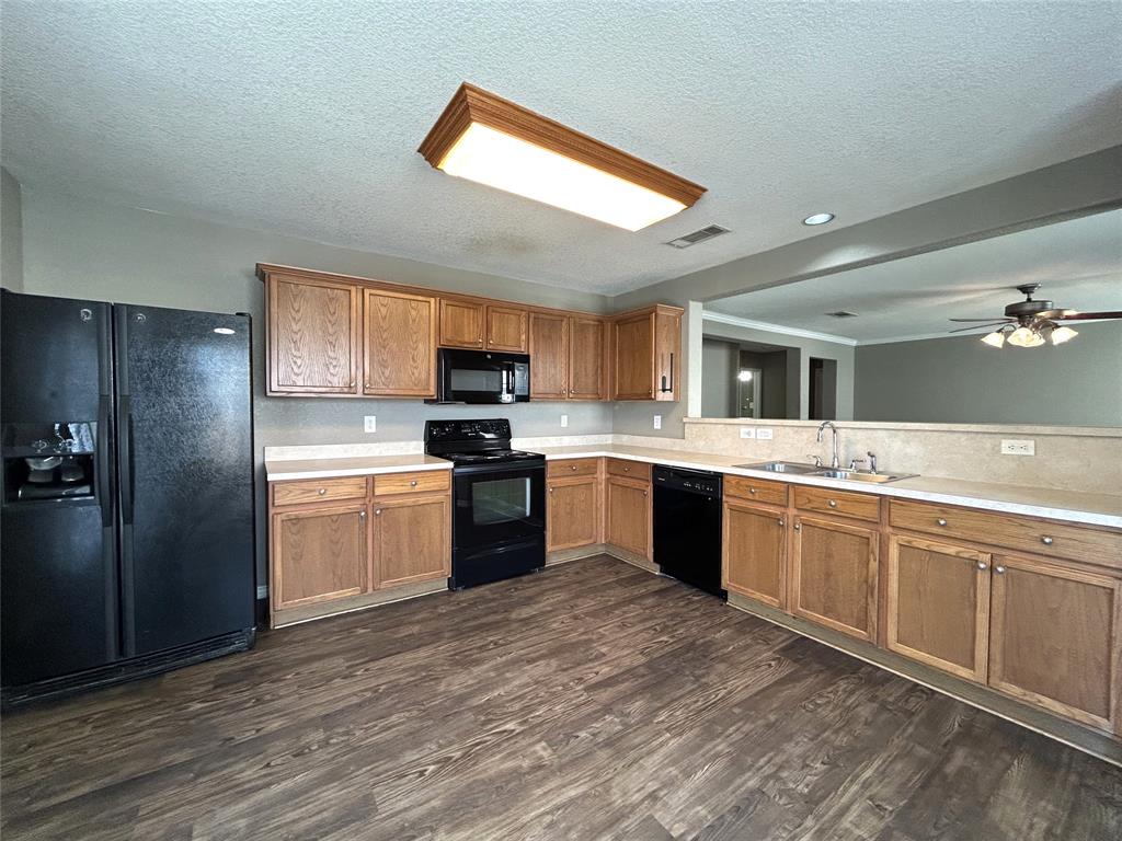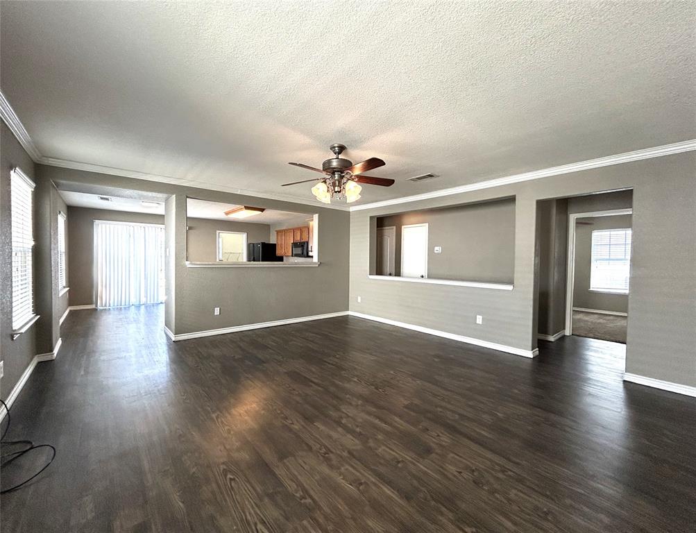 MOVE-IN READY in NORTHWEST ISD! This charming three bedroom, two full bathroom brick home is nestled in a highly desirable, family-friendly neighborhood, offering a perfect blend of comfort and convenience. With spacious living areas and neutral color palettes, this home provides a welcoming atmosphere for families of all sizes. The heart of the home is an open-concept living to kitchen space. The kitchen is spacious and provides plenty of room to eat-in or at the breakfast bar. The bedrooms are split for privacy and have ceiling fans and carpet. All windows have 2 inch faux wood blinds and there is vinyl planks throughout all the main areas! The front porch is covered and cozy - perfect for a small dining or sitting area.
