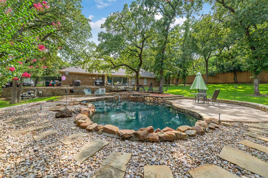 STOP!!! Your new home is right here!! This 4 bedroom, 2 and a half bathroom house is nestled on a heavily wooded, spacious lot in North Keller. Peaceful and tranquil living on almost an acre with a one-story floor plan. Welcome to two living areas with fireplaces, two dining areas, a central kitchen with island, nice bedroom sizes, and a large owners retreat with ensuite bathroom. The backyard is an entertainers dream; hosting a large inground gunite pool with a spa surrounded by a desertscape courtyard and composite wood decking. The whole backyard is fenced with an eight foot fence and wrought iron along the front. The yard has a water well that waters the yard which saves hundreds of dollars per month on water bills. The circle drive welcomes you to come visit. All information is deemed reliable, however, buyer is responsible for due diligence and verification.