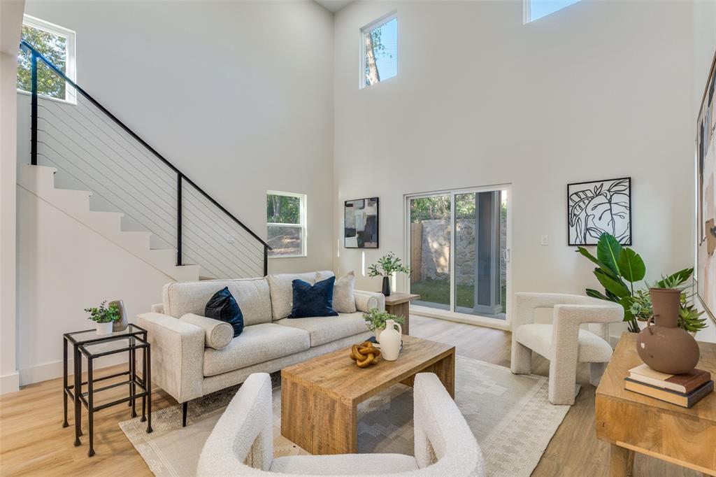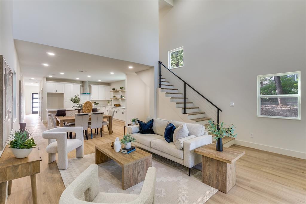 Step into the 20-foot ceiling living room, a dramatic space ideal for hosting gatherings or simply unwinding in comfort. The chef-inspired kitchen is the centerpiece of the home, thoughtfully designed for both cooking and entertaining with sleek finishes, premium appliances, and an open layout that flows seamlessly into the dining and living areas.