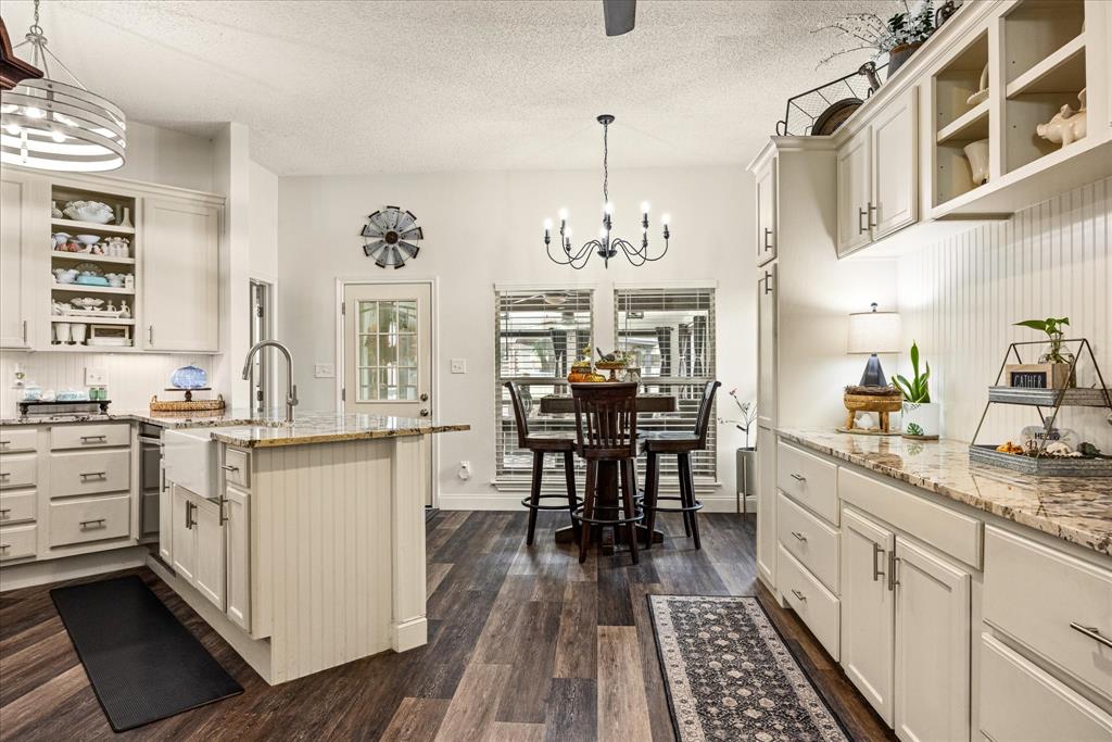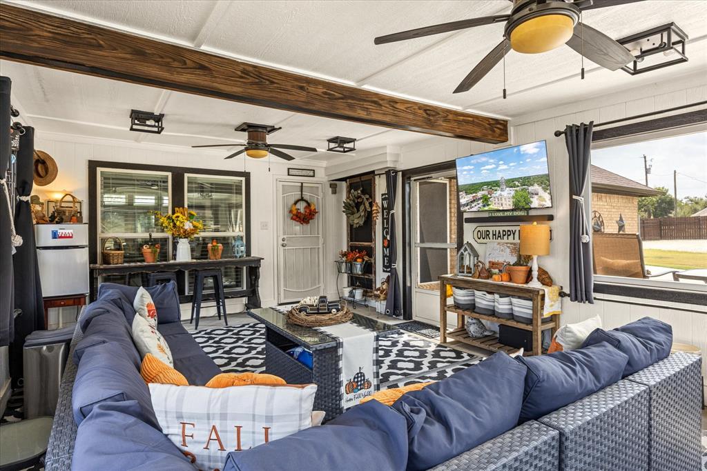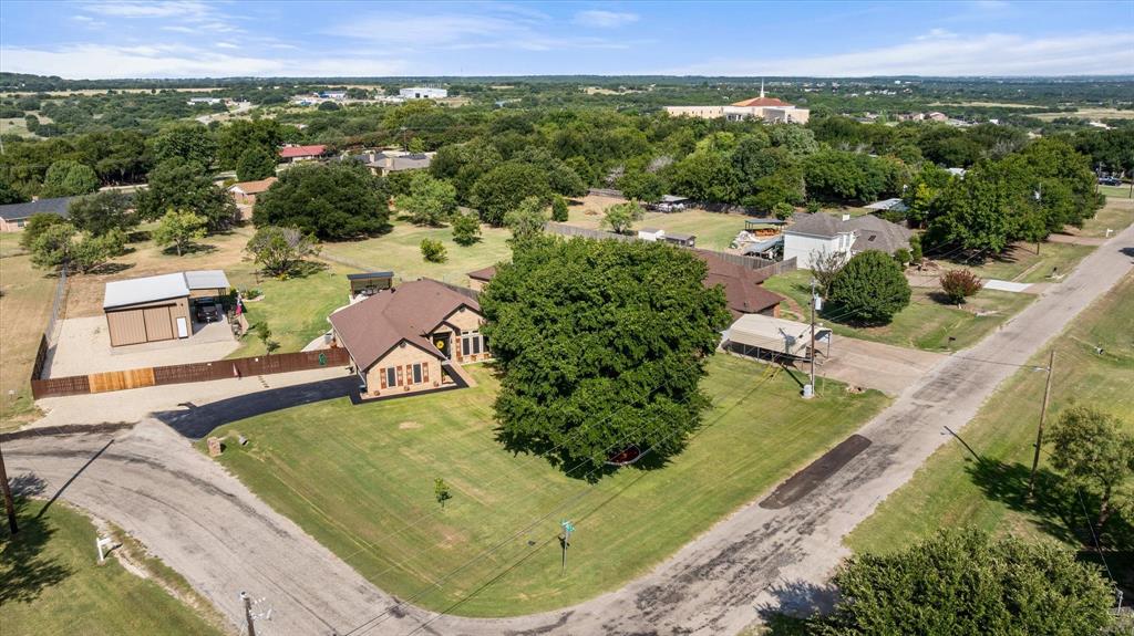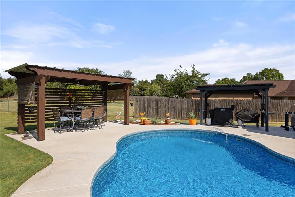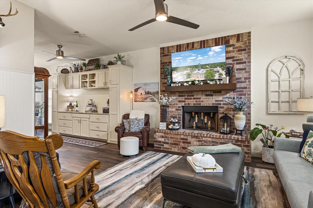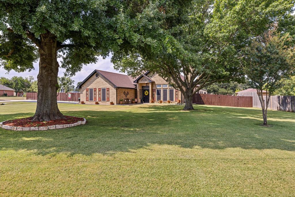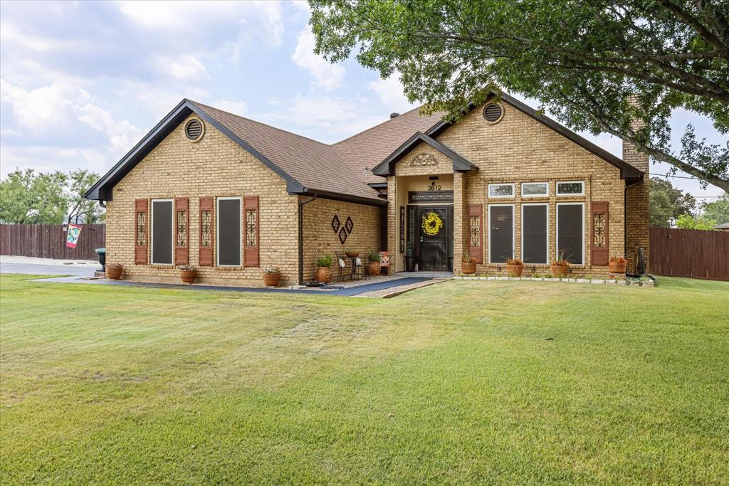 Beautifully remodeled 3-bedroom, 2-bath brick home on nearly one acre in the peaceful Hills of Granbury, just minutes from schools and the historic Granbury Square. This property offers the best of country living with modern upgrades. A complete remodel in 2021 brought a gorgeous kitchen with granite counters, farmhouse sink, and stainless steel appliances, fresh paint, luxury vinyl plank flooring, new light fixtures, and ceiling fans throughout, plus fully updated bathrooms, and a new utility vanity. The living room features a new brick fireplace surround with mantle, gas line, and a 250-gal propane tank to service both the cookstove and fireplace. Outdoor living shines with a sparkling pool and two pergolas for cooking and entertaining. One of the standout features is the almost 400 sq. ft. sunroom added in 2023, a peaceful retreat perfect for relaxing year-round. A 30x40 steel-frame shop with RV covered parking, 50 amp RV plug and insulated workshop offers endless possibilities. Additional improvements include a new 50-gallon water heater, front and back yard sod with sprinkler system, solar screens, added attic insulation, air purification system, and new garage door and opener. Schedule your showing today!
