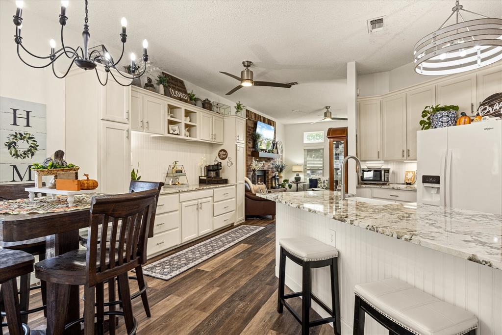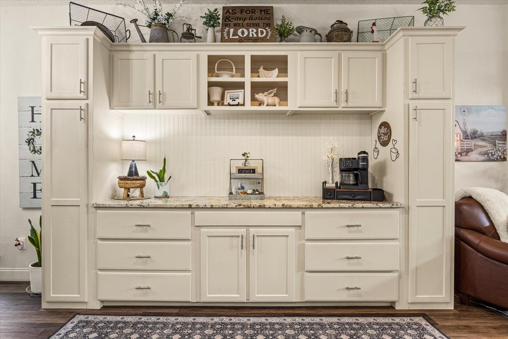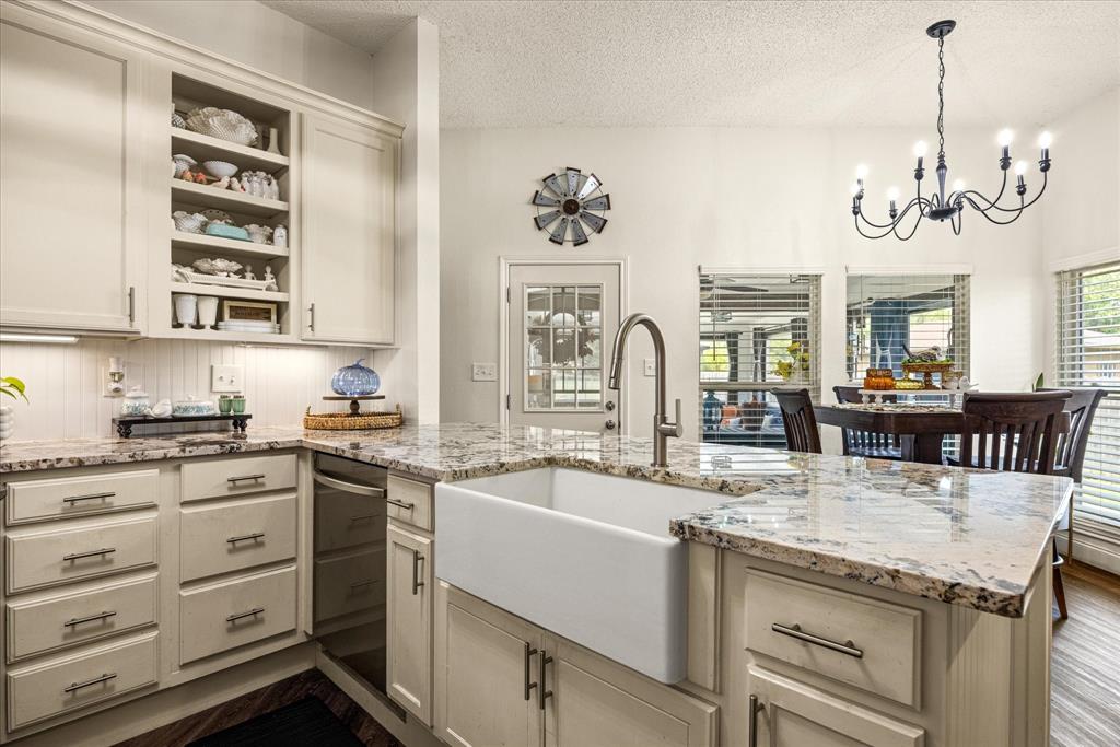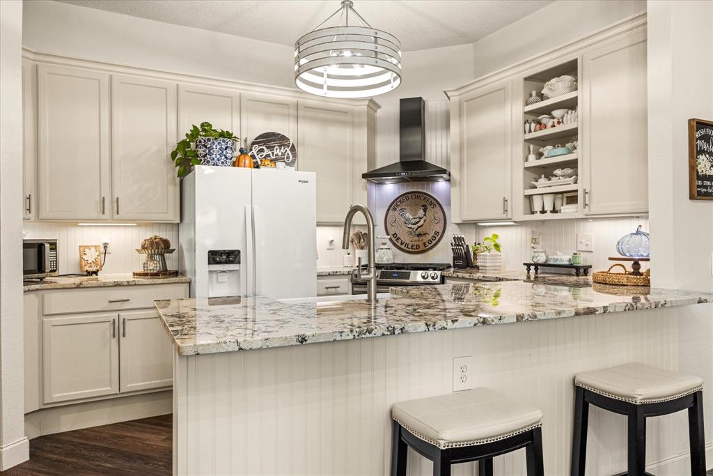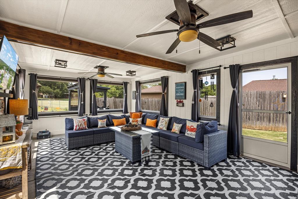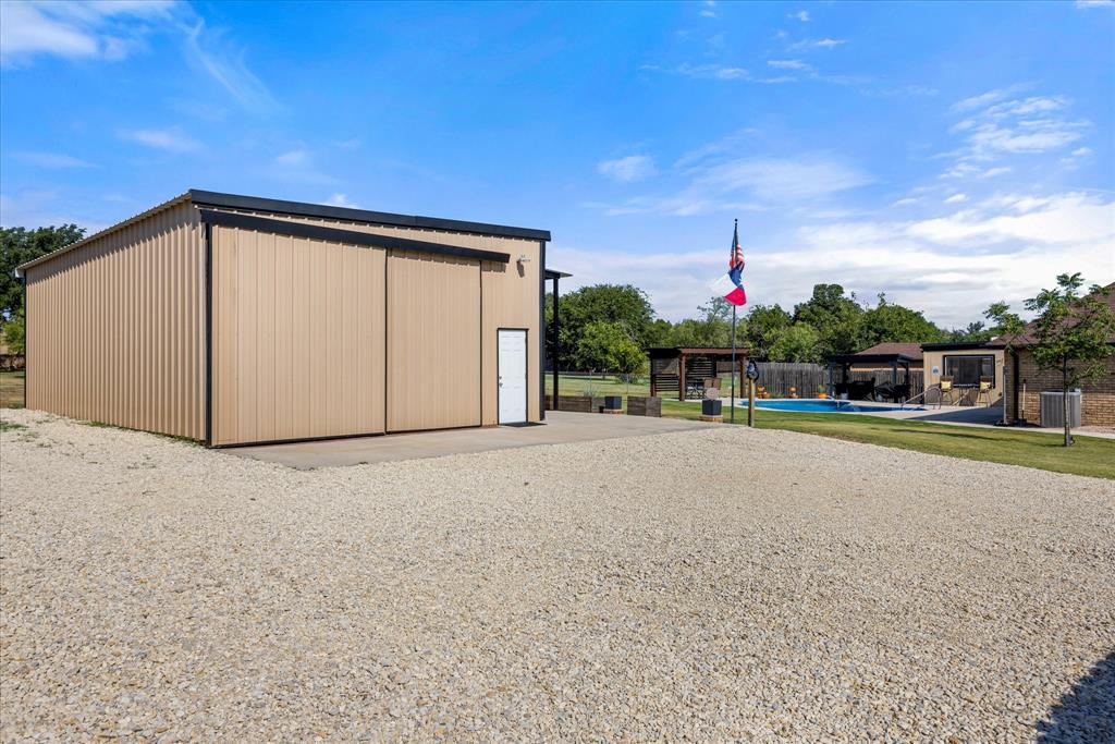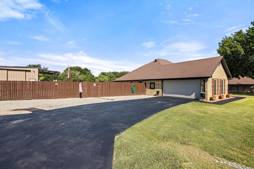 Beautifully remodeled 3-bedroom, 2-bath brick home on nearly one acre in the peaceful Hills of Granbury, just minutes from schools and the historic Granbury Square. This property offers the best of country living with modern upgrades. A complete remodel in 2021 brought a gorgeous kitchen with granite counters, farmhouse sink, and stainless steel appliances, fresh paint, luxury vinyl plank flooring, new light fixtures, and ceiling fans throughout, plus fully updated bathrooms, and a new utility vanity. The living room features a new brick fireplace surround with mantle, gas line, and a 250-gal propane tank to service both the cookstove and fireplace. Outdoor living shines with a sparkling pool and two pergolas for cooking and entertaining. One of the standout features is the almost 400 sq. ft. sunroom added in 2023, a peaceful retreat perfect for relaxing year-round. A 30x40 steel-frame shop with RV covered parking, 50 amp RV plug and insulated workshop offers endless possibilities. Additional improvements include a new 50-gallon water heater, front and back yard sod with sprinkler system, solar screens, added attic insulation, air purification system, and new garage door and opener. Schedule your showing today!