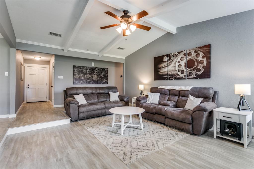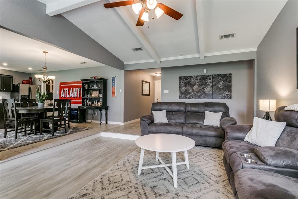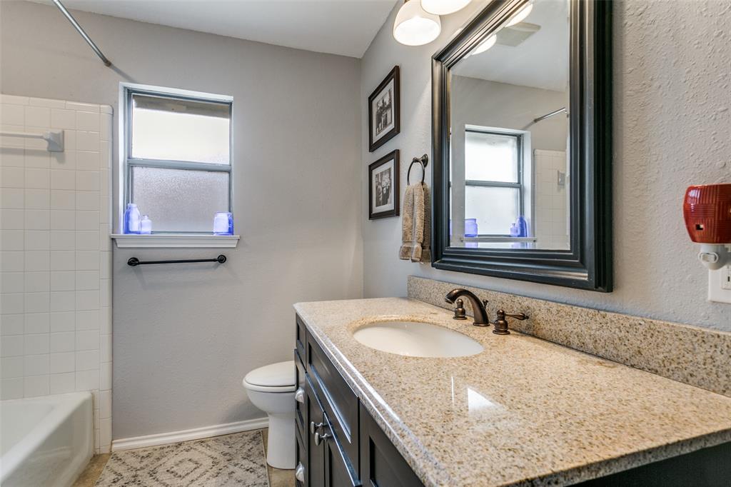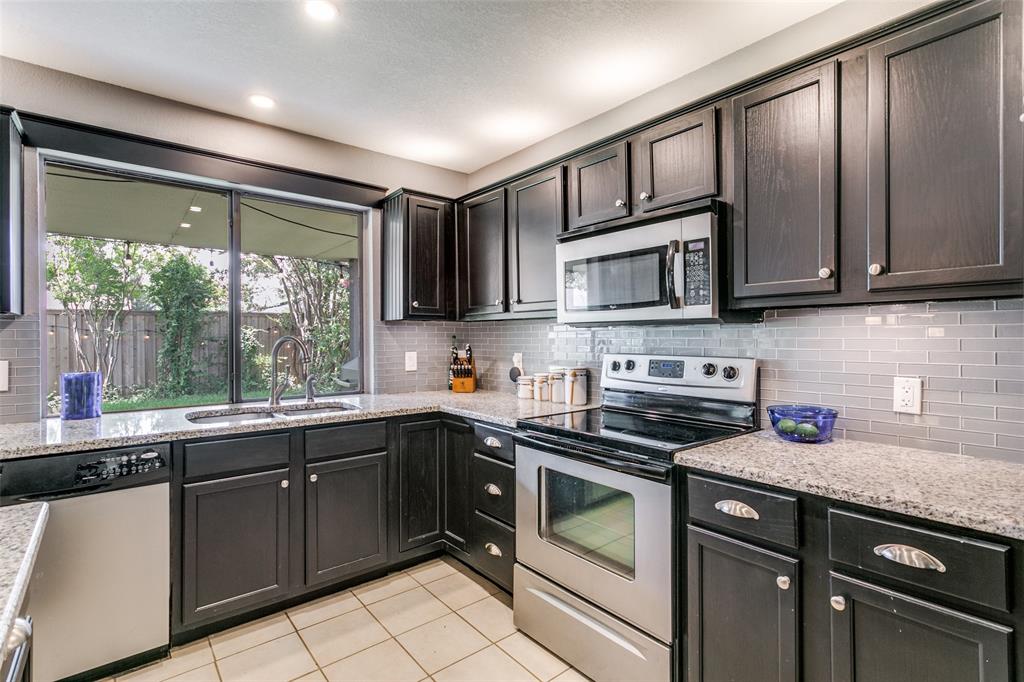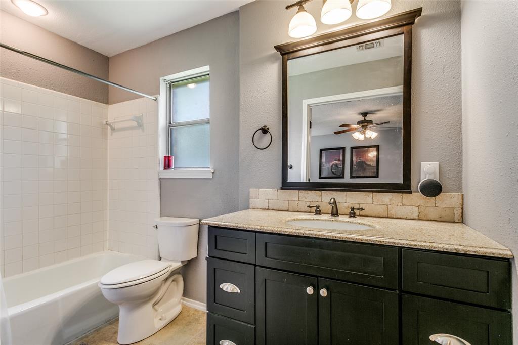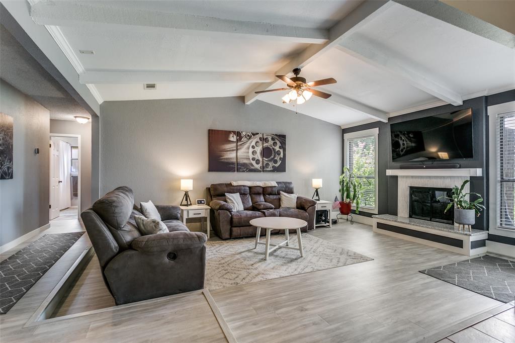 Charming 3-Bedroom Home with Modern Updates & Spacious Living! Welcome to this beautifully updated 3-bedroom, 2-bath home featuring a spacious 2-car garage and a thoughtfully designed open floor plan perfect for both everyday living and entertaining. Step inside to a large living area highlighted by vaulted ceilings and a cozy wood-burning fireplace, creating a warm and inviting atmosphere. The eat-in kitchen is a true showstopper—open to the living space and featuring a large island with bar seating, granite countertops, custom tile backsplash, and stainless steel appliances. Step outside to a large, private backyard with beautiful mature trees and a covered patio with pass-through window connecting the kitchen to the outdoors, making outdoor entertaining a breeze. Located in a prime Bedford location, just minutes from DFW Airport, with quick access to Highways 121, 183, 114 and close to the popular Bedford Boys Ranch park, you'll enjoy the perfect blend of convenience and comfort.