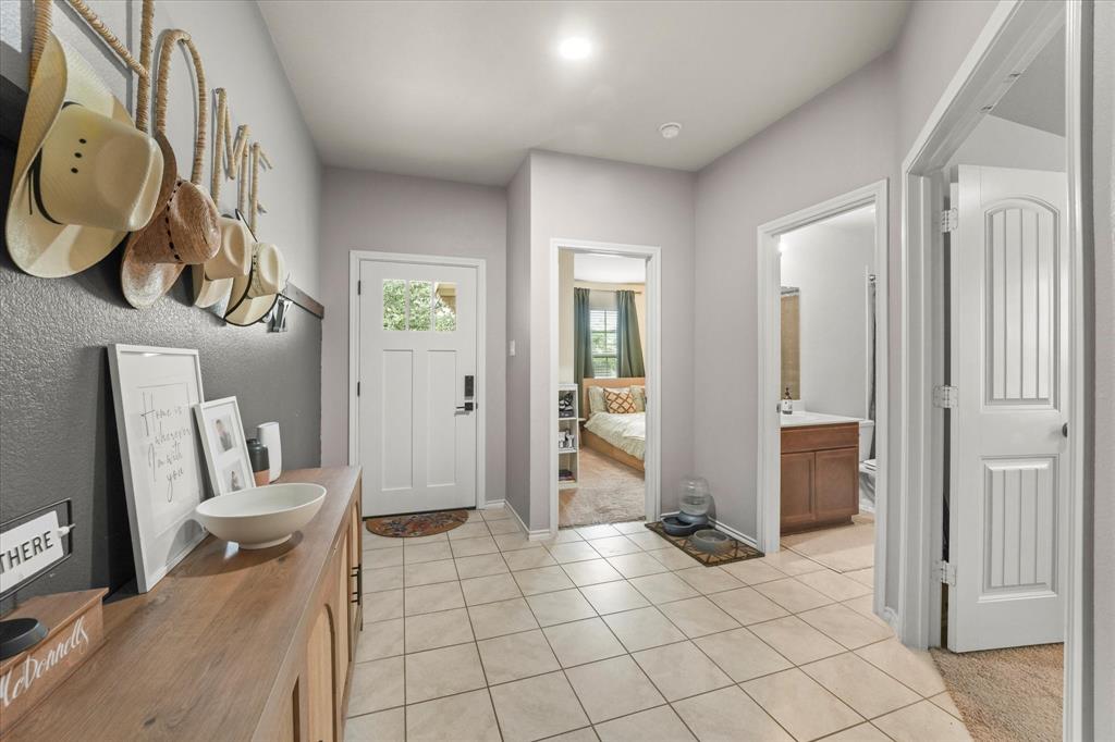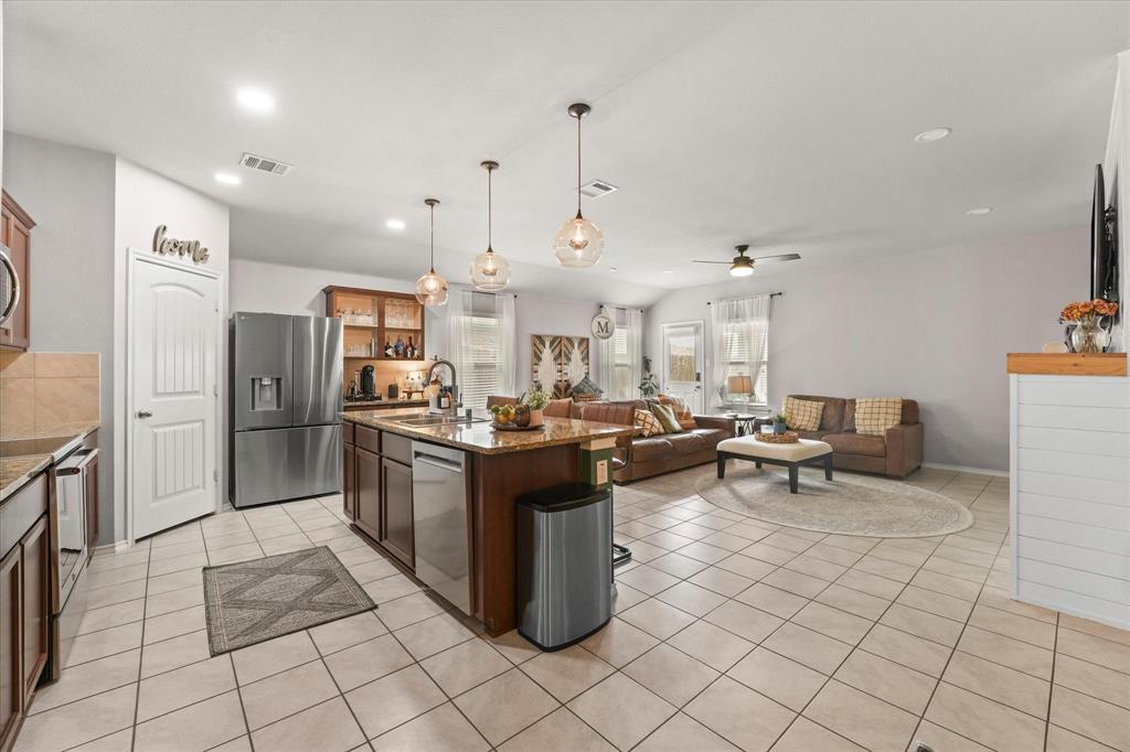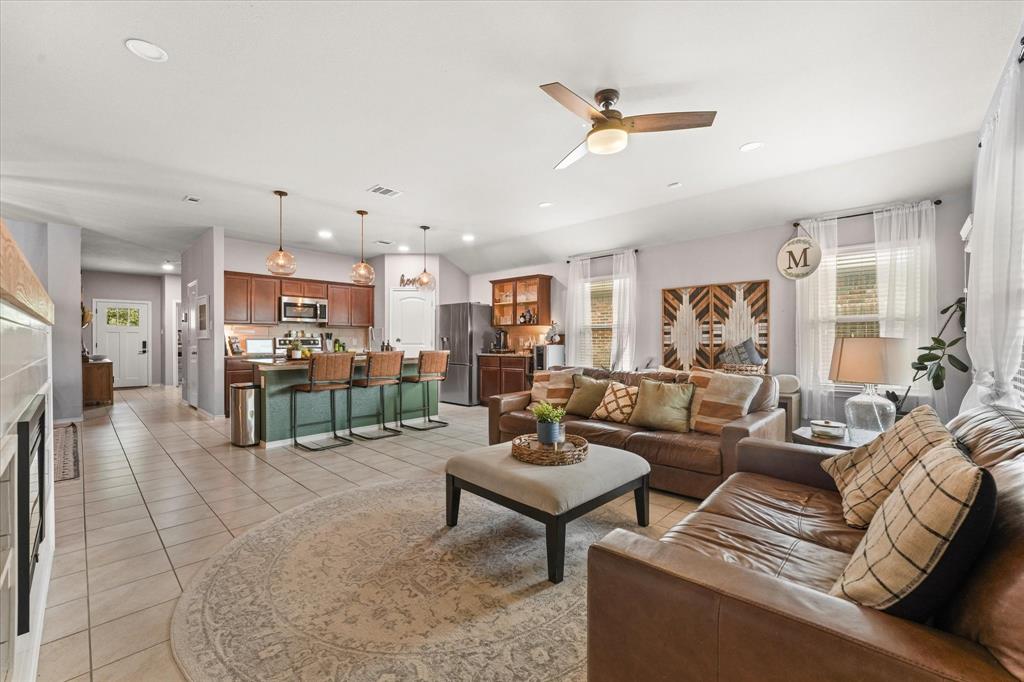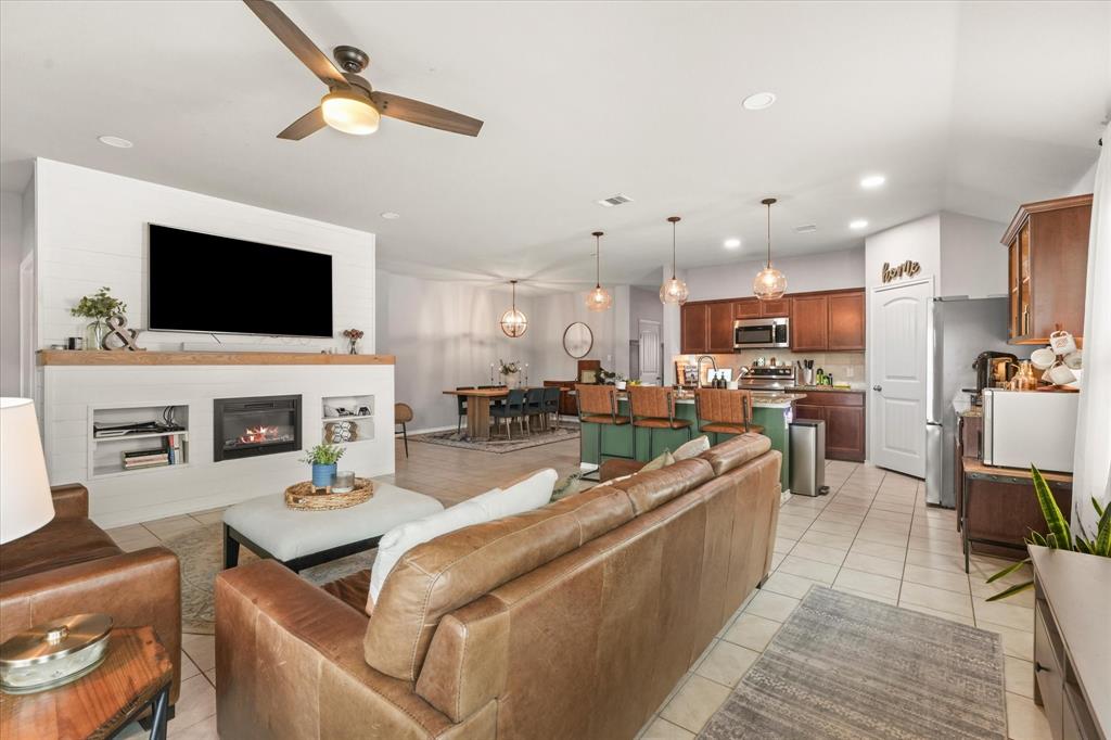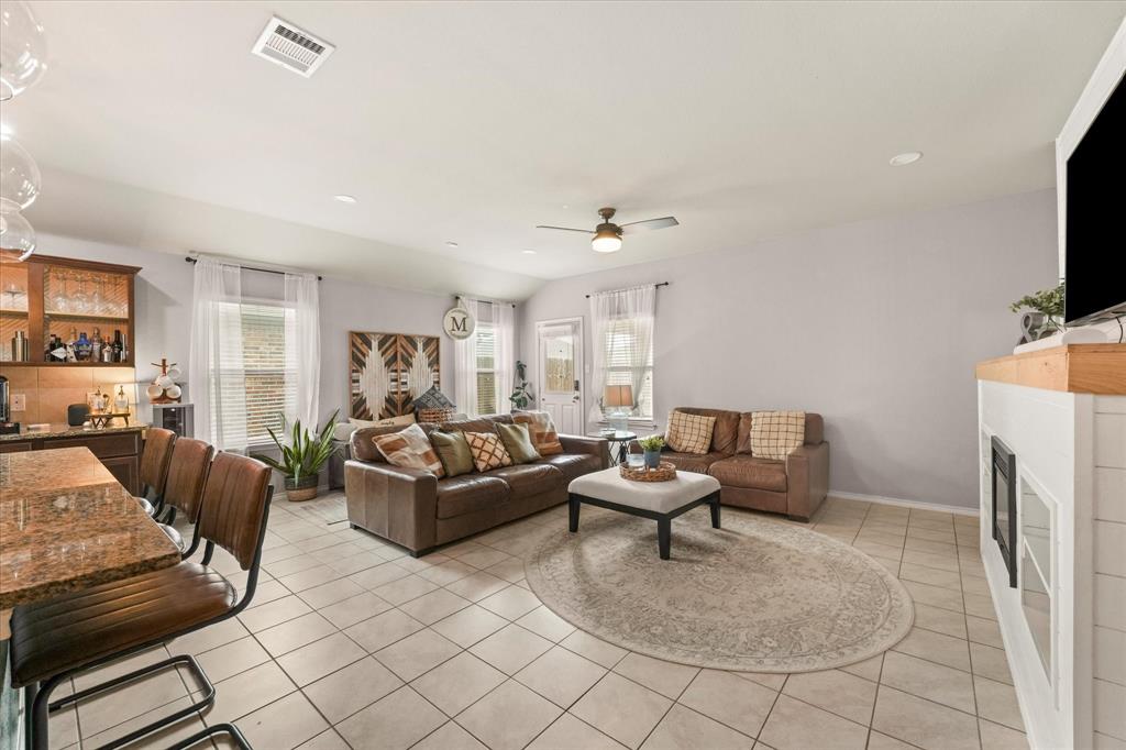 This charming one-story home is located in the highly desirable Woodcreek community in Fate, TX, offering a perfect blend of comfort, convenience, and lifestyle. Featuring an open-concept design, the home includes ceramic tile throughout, with cozy carpet in the bedrooms. The spacious living room, complete with a built-in electric fireplace, creates the perfect setting for family gatherings or quiet nights in.