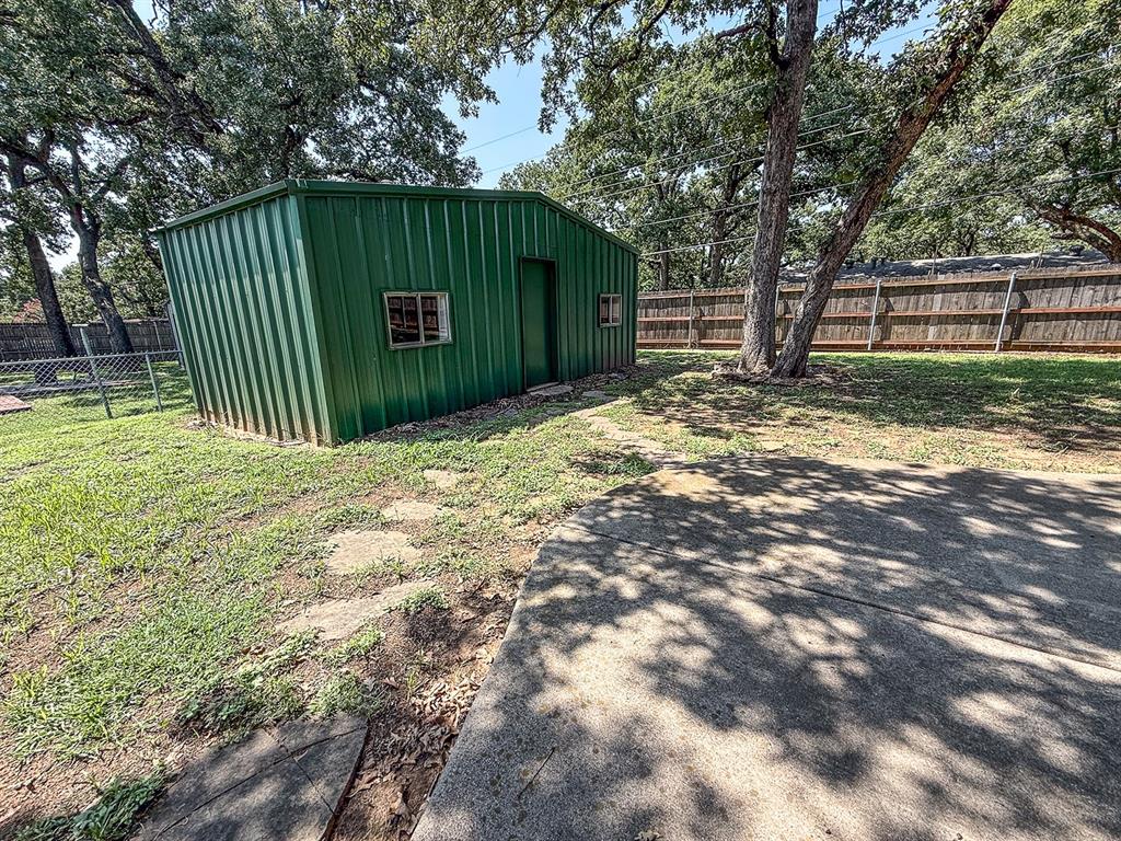 Outside, you’ll love the large concrete patio, perfect for hosting barbecues or enjoying peaceful evenings under the Texas sky. The detached storage building in the backyard has been thoughtfully transformed into a multi-purpose space ideal for a home office, workshop, studio, or additional storage.