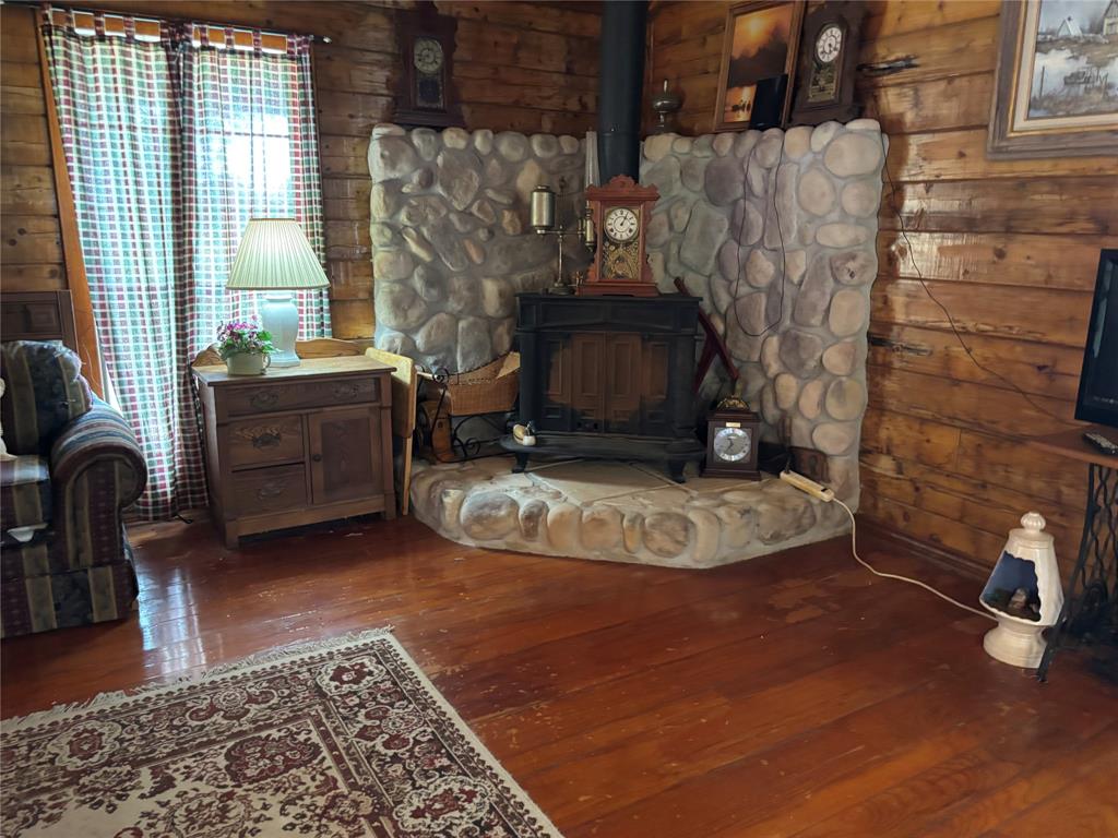 Ideal in so many ways. Log home on 1 acre, just minutes from Middle & High Schools. 3 bedrooms with 2 down and spacious upper floor has full bath, huge closet, to use as super private primary suite, media, game room, or kids hide away. The rustic cozy interior reflects a simpler time, great room is finished as a log cabin with vaulted ceilings, a free standing wood burning stove and numerous antiques. Bathrooms and kitchen are up to date. This lovely home has suffered exterior wear and tear, roof and some logs need to be replaced. Seller is aware and will escrow or consider in pricing. All and all this is property is a treasure with so much character, and potential, the work necessary does not tarnish the lovely place this is.