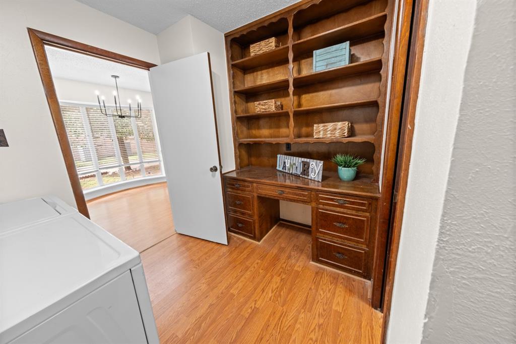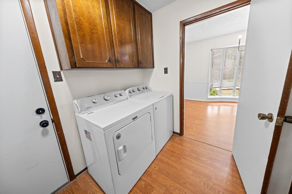 Welcome to Royal Oaks, one of the area’s most desirable neighborhoods! This charming 3-bedroom, 2.5-bath home combines comfort, convenience, and endless potential. Step outside to your own backyard retreat, surrounded by mature trees that create the perfect setting for morning coffee, weekend gatherings, or simply soaking in the peace and quiet. Inside, the open living room with built-ins flows seamlessly into the formal dining room, offering a versatile space for everyday living and entertaining. A generous utility room with a built-in organizational nook & organization desk adds functionality, while the thoughtful layout makes it easy to bring your personal style and updates to life. Practical features like an extended driveway with ample parking and two storage units set this property apart, giving you space for all your extras. Fresh paint an updated lighting have been added while a few cosmetic updates could still be made to make your new home shine. The location can’t be beat—just down the street from Lakewood Elementary, with quick access to George Bush, 121, and nearby shopping and dining. A wonderful opportunity to make this home your own!