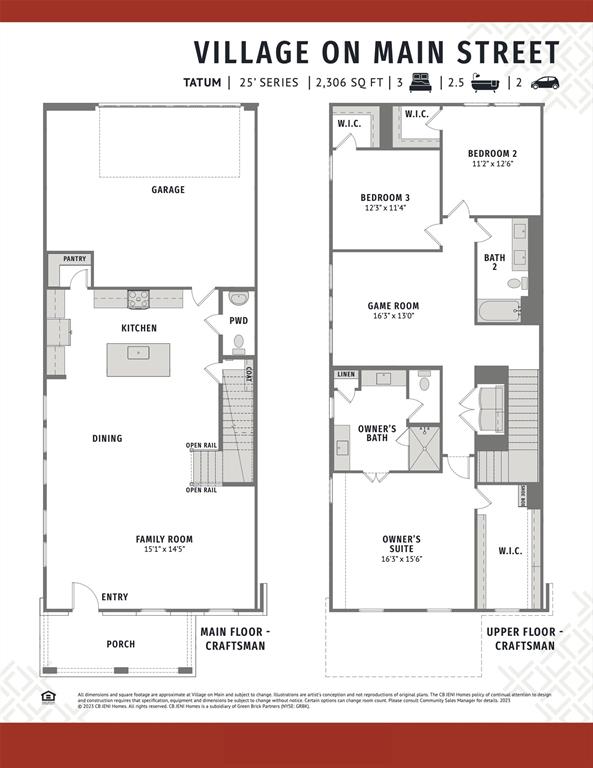 CB JENI HOMES TATUM floor plan. Bathed in natural light, this beautifully designed open-concept home blends effortless entertaining with everyday comfort. The expansive living room flows seamlessly into a gourmet kitchen featuring quartz countertops, an oversized island with single-bowl sink, stainless steel gas appliances vented to the outside, and custom site-finished cabinetry complete with thoughtful touches like a built-in trash pullout and deep pot-and-pan drawers. Upstairs, a spacious gameroom provides the ideal retreat. Designer-selected finishes include engineered Revwood plank flooring and luxe tile throughout, all in a timeless neutral palette curated by the design team. The serene owner’s suite boasts a sprawling walk-in closet and spa-inspired bath with oversized shower and dual vanities. Generously sized secondary bedrooms, ample storage, and a welcoming front porch—perfect for morning coffee or evening relaxation—make this home as functional as it is beautiful.