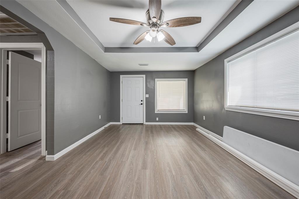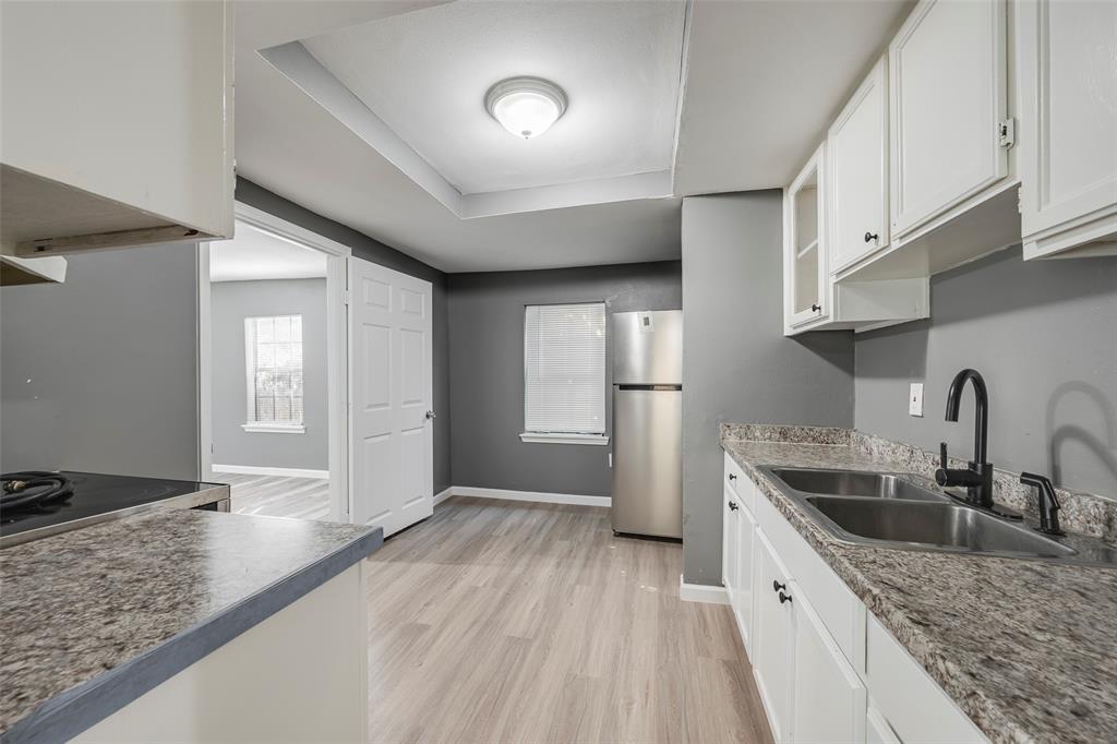 Located in West Fort Worth, this 4 bedroom, 2 bathroom single family residence offers a versatile floor plan with a duplex style design that creates multiple living options. The home is set up with two separate entrances, each providing its own living area, full kitchen with refrigerator and cooktop, bedrooms, and full bathroom. This arrangement is well suited for extended family living, rental income, or private guest accommodations while still maintaining the benefits of a single family home.