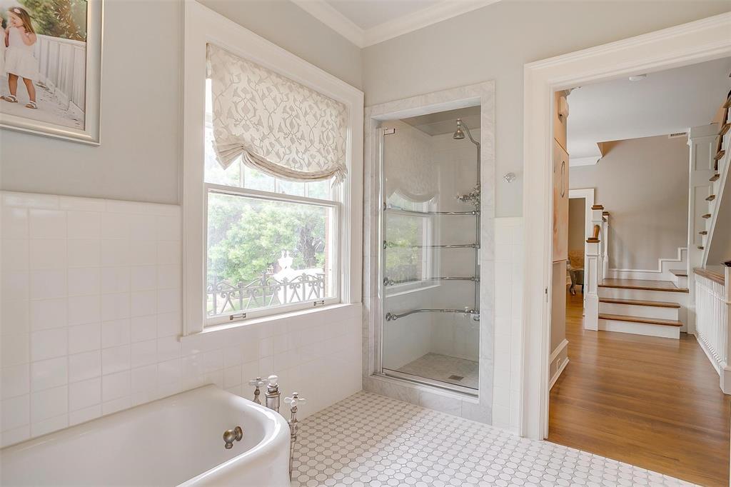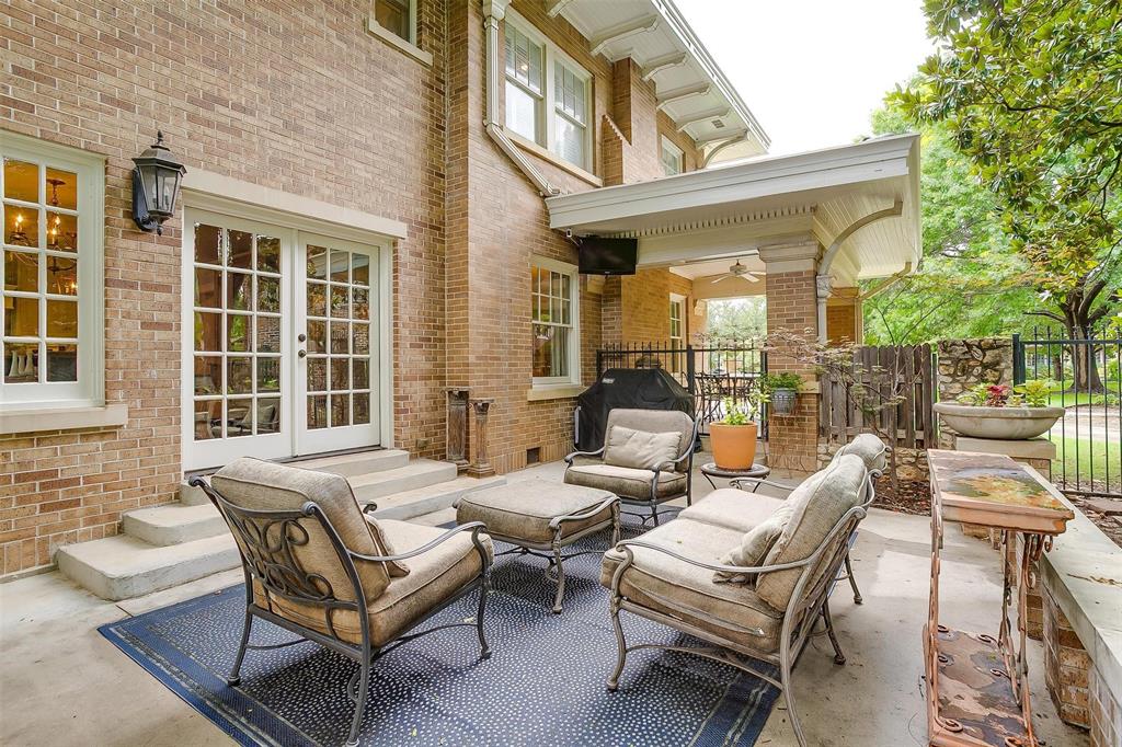 One of Berkeley’s most exceptional homes tucked at the end of a cul-de-sac is arguably one of the most attractive homes in all of Fort Worth! Original architecture is outstanding with wood windows, extensive cast stone detail, a green Ludowici tiled roof (underlayment replaced in 2017) all contributing to stunning curb appeal. Taken to the studs (2011) with extensive restoration: Kitchen boasts a 5 burner dual-fuel Lacanche French range, stainless Bosch dishwasher, warming drawer, paneled Thermador frig freezer + nearby a dry bar with wine frig. The kitchen opens on 2 sides to a large, private backyard. Multiple outdoor open air patios extends the hospitality space. Built in gas fire pit. Expansive primary suite on the 2nd floor. The primary suite is large enough to include a sitting space and a large bathroom with marble is equally beautiful & functional. Great soaking tub, double sinks, makeup vanity space, separate toilet room, walk-in shower, large closet with drawer stacks, shoe racks... Two other 2nd floor bedrooms share a bathroom that offers a tub and walk-in shower. The 3rd floor offers a room + living space that functions as a 4th bedroom with an ensuite full bath & closet. The room could be easily enclosed. Currently a landing with built-in bunks on the 3rd floor offers additional sleeping space. The backyard is private & expansive. Mature Pecan trees, large Magnolia, Crepe Myrtles, Red Oaks, Redbud trees...yard is outlined in stone + wood fencing. Green house (149 sqft) with restored glass, 4 car tandem garage (757 sqft) + above garage an old apartment could be restored for more guest space (392 sqft). Favorite features include the driveway curving to disappear as you approach garage, interior wood french doors with beveled glass, an arched glass entry door, restored yet historic style push button light switches. Large utility room by back door with WD closet, desk, mudroom storage. 2nd living (the original dining room) is used as a study & music room.