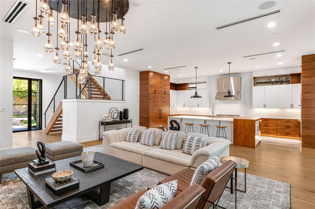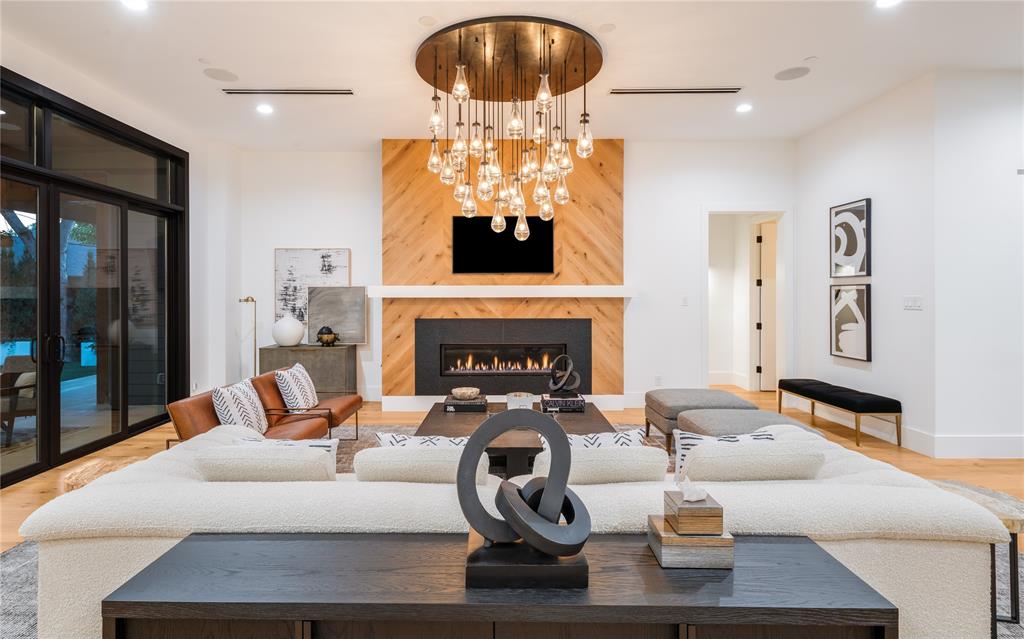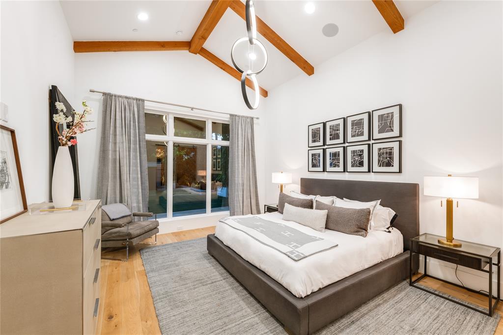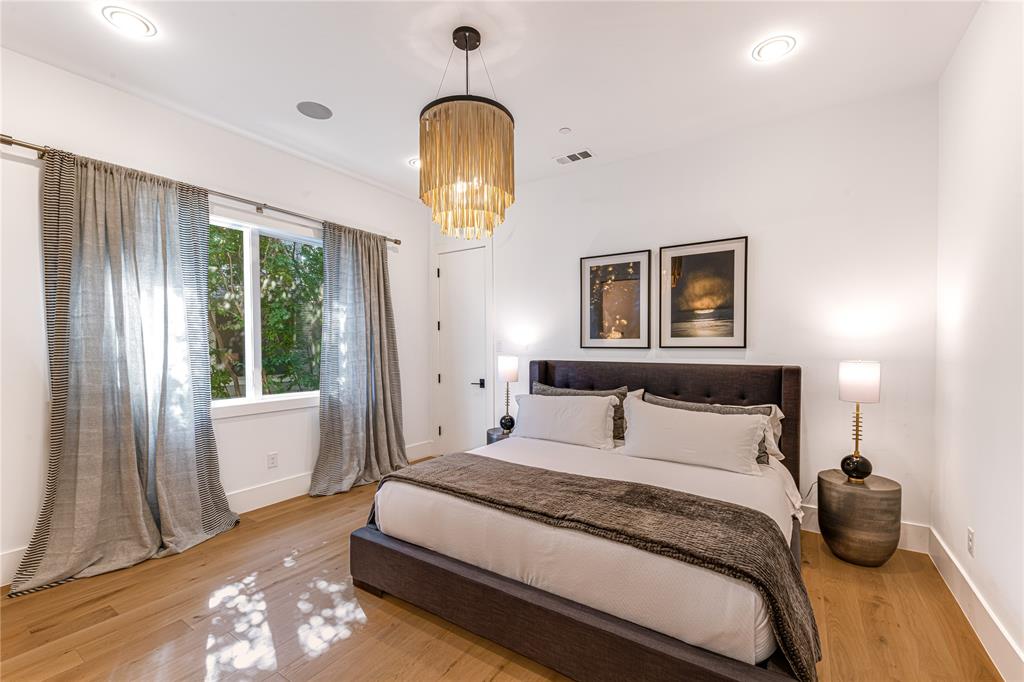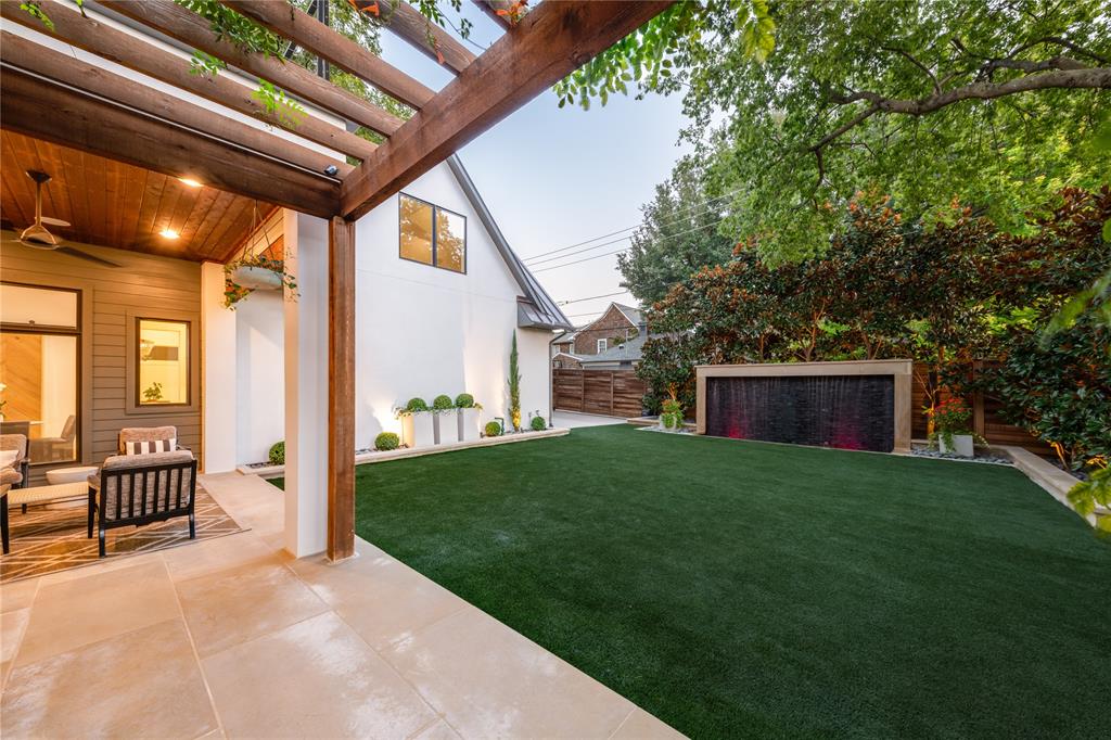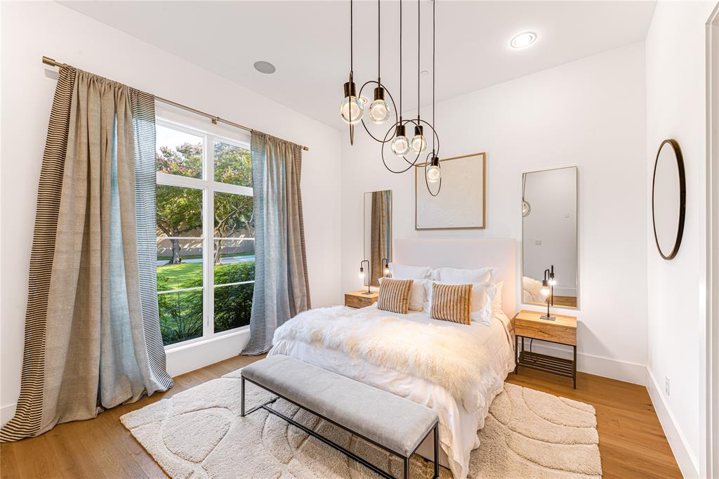 Step into luxury living with this architectural gem nestled in the heart of University Park behind the wall on a private cul-de-sac street & located just 1 block from Boone Elementary in HPISD. Custom-built by Anderson Homes, this stunning modern residence is a showcase of refined luxury, cutting-edge design & unparalleled craftsmanship. A La Cantina double-pane glass front door opens to clean modern lines, natural materials & warm luxury textures that define the home’s effortless elegance. Details include 11' ceilings down, 6-in white oak hardwoods & Jeld-Wen wood-clad windows bathe the interiors in natural light. The open-concept great room, anchored by a linear wall fireplace & a spectacular Restoration Hardware Rain chandelier, flows effortlessly into the chef’s culinary kitchen-ideal for both modern living & entertaining. Showcasing custom cabinetry & endless counters, the kitchen also boasts an immense quartz waterfall island with seating for 4, premier Thermador appliances, a large walk-in pantry plus a sunlit dining area. The 1st floor reveals a luxurious primary suite, with its vaulted beamed ceiling, spa-like bath & room-size walk-in closet, a private guest suite & dedicated study. A stunning iron staircase with cedar & walnut accents leads upstairs to 3 ensuite bedrooms, a large game room with wet bar & sliding doors opening to a spacious balcony perfect for indoor-outdoor living plus a media room with an 84-in smart TV ideal for movie nights. Outside, the stunning backyard has been expertly transformed by Radiant Gardens & Southern Botanical into a breathtaking retreat. Landscape lighting sets the perfect ambiance as you gather beneath the spacious covered terrace, which flows into an open-air patio shaded by its cedar arbor. A trickling wall fountain adds a dramatic focal point, surrounded by magnolia trees & lush modern landscaping that is beautiful by day, enchanting by night. The expansive turfed lawn also offers space for a future pool. Don't miss!