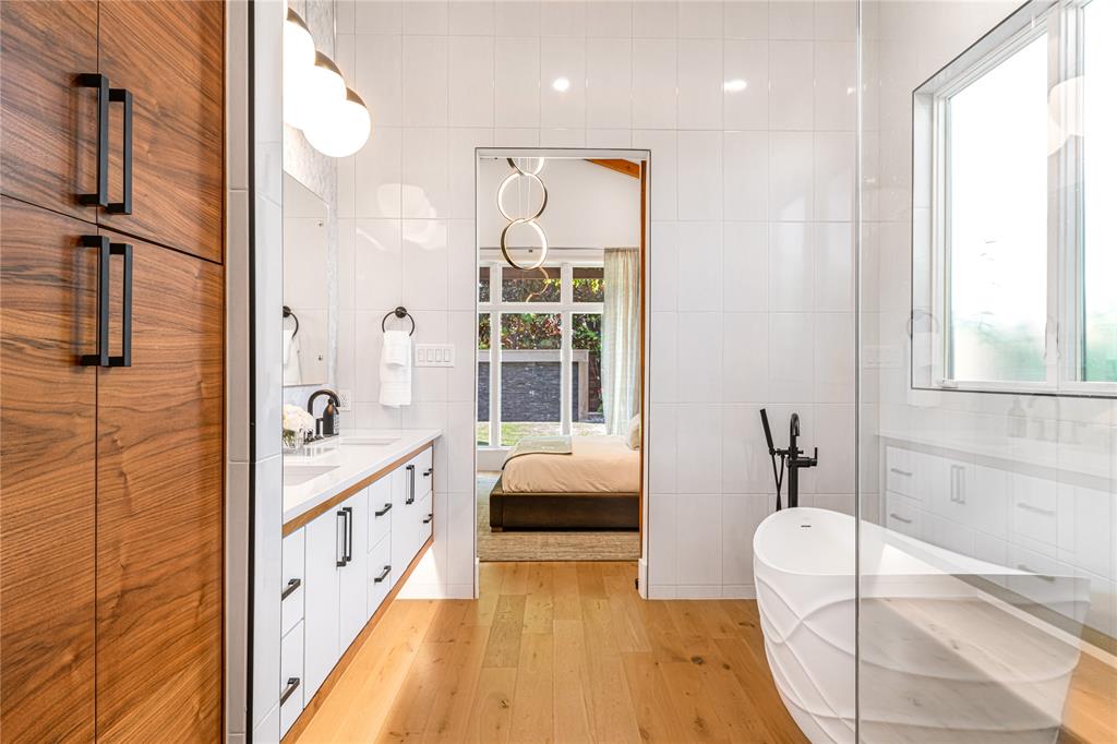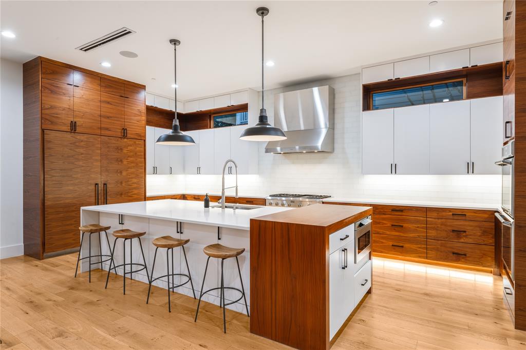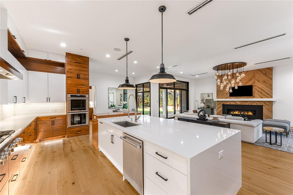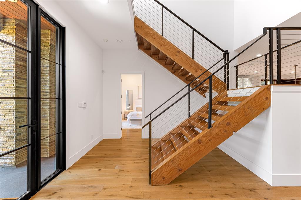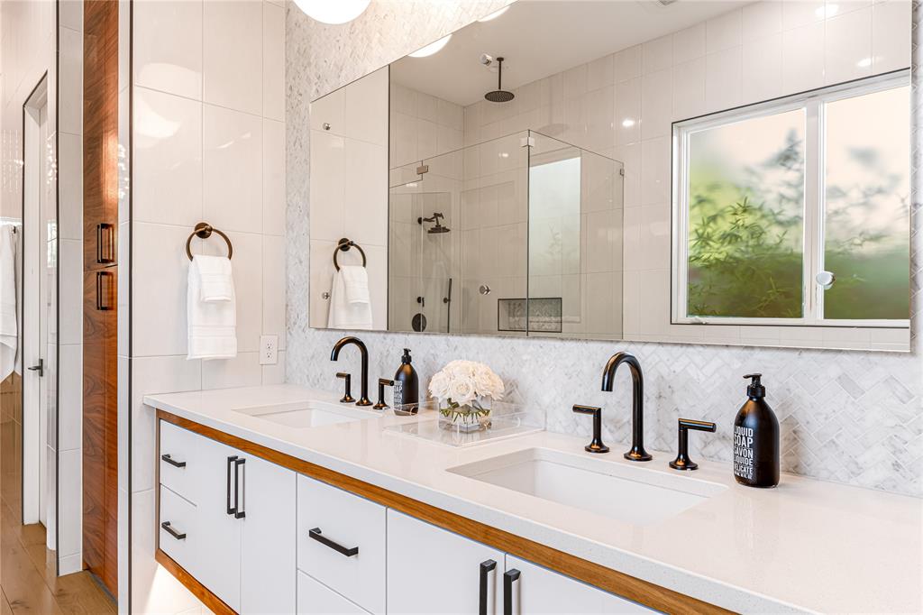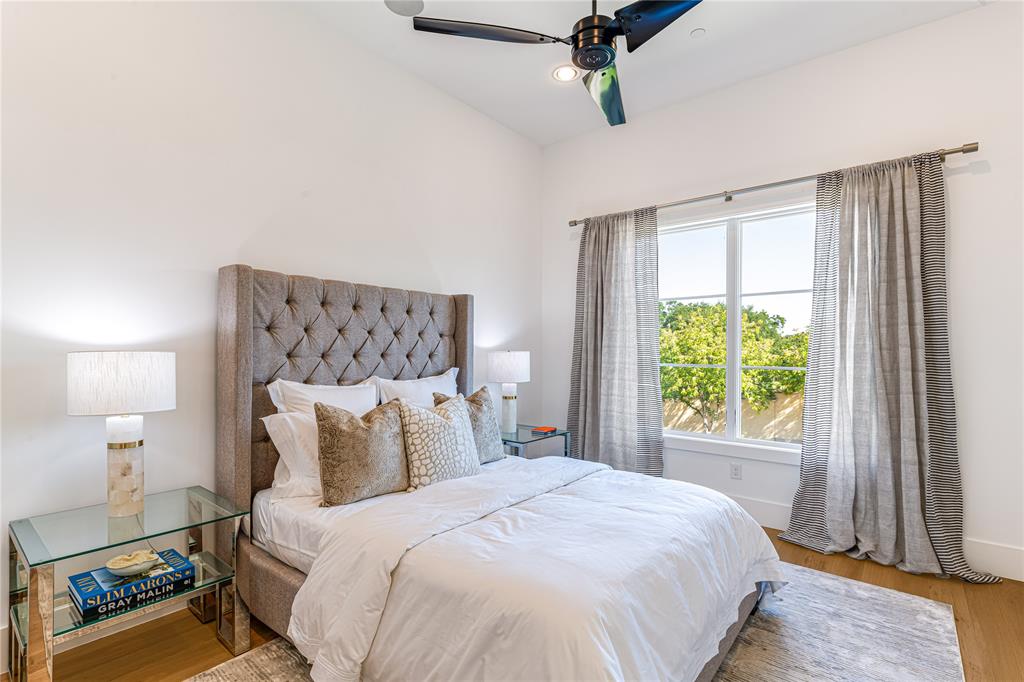 Step into luxury living with this architectural gem nestled in the heart of University Park behind the wall on a private cul-de-sac street & located just 1 block from Boone Elementary in HPISD. Custom-built by Anderson Homes, this stunning modern residence is a showcase of refined luxury, cutting-edge design & unparalleled craftsmanship. A La Cantina double-pane glass front door opens to clean modern lines, natural materials & warm luxury textures that define the home’s effortless elegance. Details include 11' ceilings down, 6-in white oak hardwoods & Jeld-Wen wood-clad windows bathe the interiors in natural light. The open-concept great room, anchored by a linear wall fireplace & a spectacular Restoration Hardware Rain chandelier, flows effortlessly into the chef’s culinary kitchen-ideal for both modern living & entertaining. Showcasing custom cabinetry & endless counters, the kitchen also boasts an immense quartz waterfall island with seating for 4, premier Thermador appliances, a large walk-in pantry plus a sunlit dining area. The 1st floor reveals a luxurious primary suite, with its vaulted beamed ceiling, spa-like bath & room-size walk-in closet, a private guest suite & dedicated study. A stunning iron staircase with cedar & walnut accents leads upstairs to 3 ensuite bedrooms, a large game room with wet bar & sliding doors opening to a spacious balcony perfect for indoor-outdoor living plus a media room with an 84-in smart TV ideal for movie nights. Outside, the stunning backyard has been expertly transformed by Radiant Gardens & Southern Botanical into a breathtaking retreat. Landscape lighting sets the perfect ambiance as you gather beneath the spacious covered terrace, which flows into an open-air patio shaded by its cedar arbor. A trickling wall fountain adds a dramatic focal point, surrounded by magnolia trees & lush modern landscaping that is beautiful by day, enchanting by night. The expansive turfed lawn also offers space for a future pool. Don't miss!