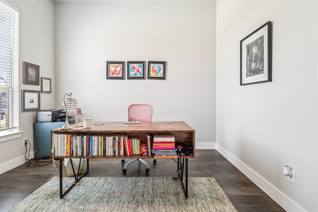 Endless space, effortless living! 847 Longbranch is a meticulously maintained Highland Homes single-story gem nestled in the award-winning, amenity-rich Union Park of Little Elm. Boasting 2,784 square feet under one roof, this 4 bedroom, 3.5 bath home welcomes you with an elegant office featuring double doors, perfect for quiet productivity, and a media room ready for movie nights. The primary suite is a serene retreat at the rear of the home, featuring a luxurious ensuite with both a tub and shower and a spacious walk-in closet. A secondary bedroom with its own ensuite bath provides an ideal guest suite, offering privacy and comfort. One-story living offers unmatched convenience and flow, no stairs to worry about, and generous bedrooms and living spaces allow everyone to spread out. The backyard offers low-maintenance turf and landscape rock, providing a clean, attractive, and no fuss space with plenty of room for kids and dogs to roam and play. The HOA handles front-yard upkeep, adding ease and curb appeal every step of the way. This neighborhood is centered around a 30-plus-acre Central Park which features a resort-style pool, splash pad, indoor fitness center, sports courts, fitness course, exploration park, and more. Miles of walking and biking trails weave through greenbelts, parks, sports fields, and food-truck gathering spaces. An on-site Lifestyle Manager organizes 300+ events annually, from yoga sessions and movie nights to seasonal festivals, fostering community and connection for families of all kinds. The neighborhood includes its own elementary school, with access to nearby middle and high schools. Situated along Highway 380, Union Park offers access to Frisco, Denton, Plano, and major thoroughfares, while still delivering a peaceful, laid back vibe of suburbia. This home brings together thoughtful single-story design, upscale comfort, and an effortless lifestyle in a community that truly delivers on its promise of connection, convenience, and care.