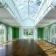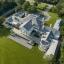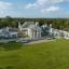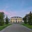 Inside, a checkerboard marble entryway sets the tone for the home’s striking aesthetic. The Great Room soars with 23-foot ceilings, leading to an entertaining wing designed for hosting on a grand scale. A glass-ceilinged conservatory and a barrel-vaulted banquet hall provide