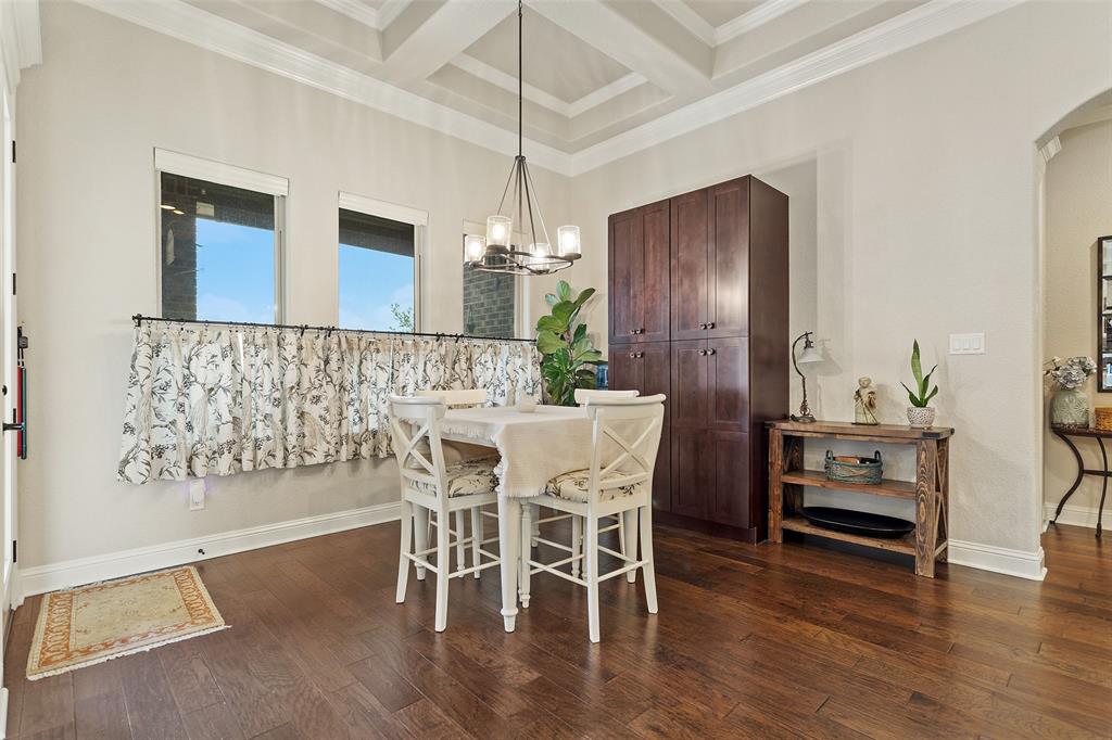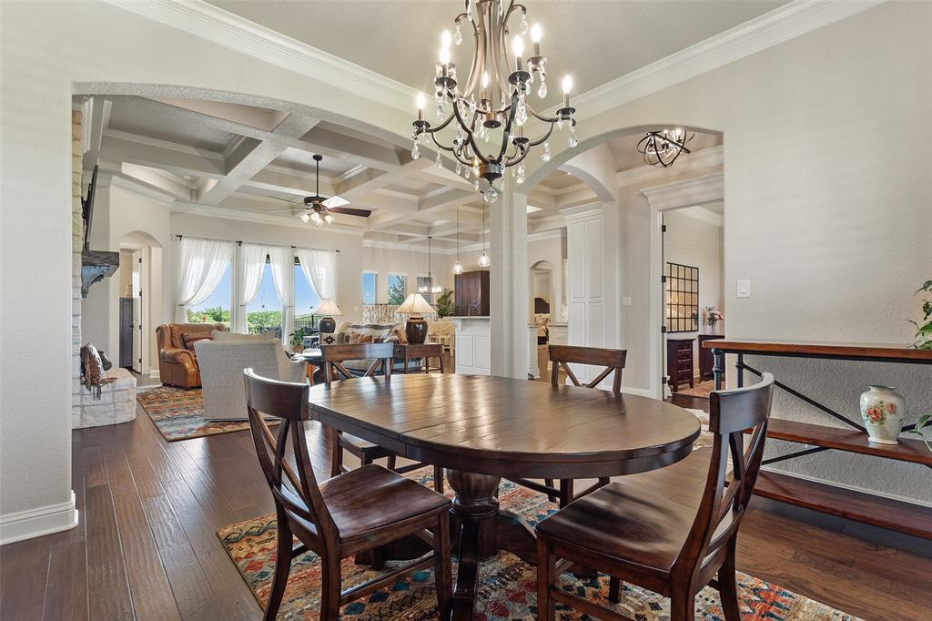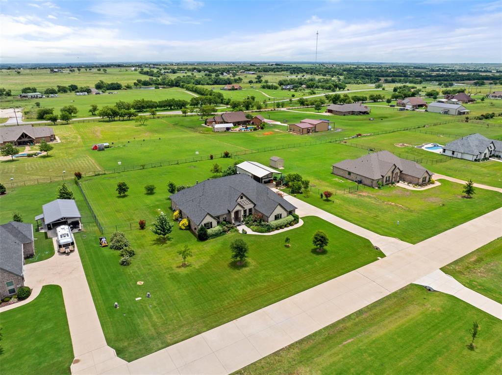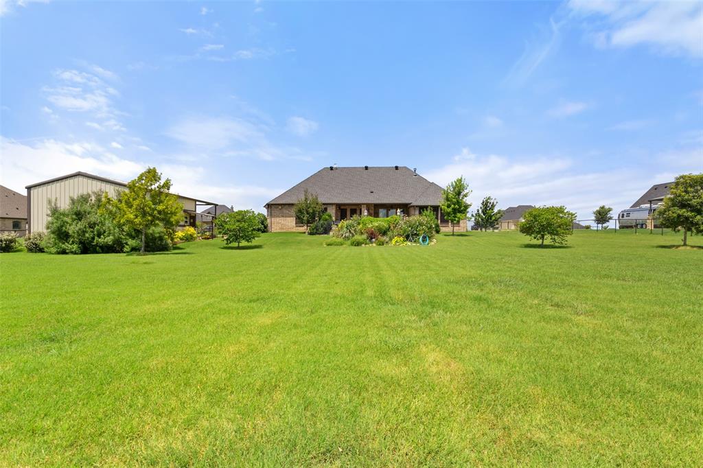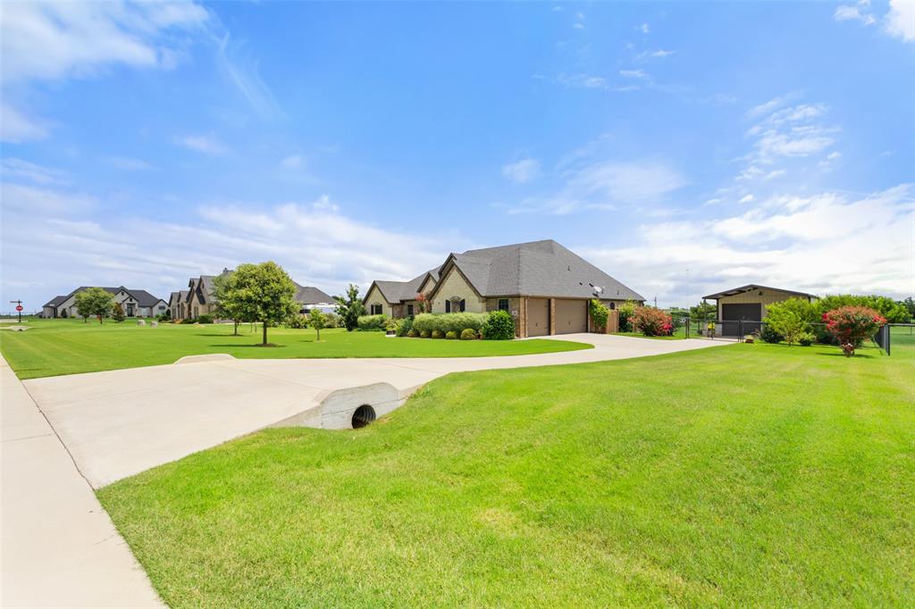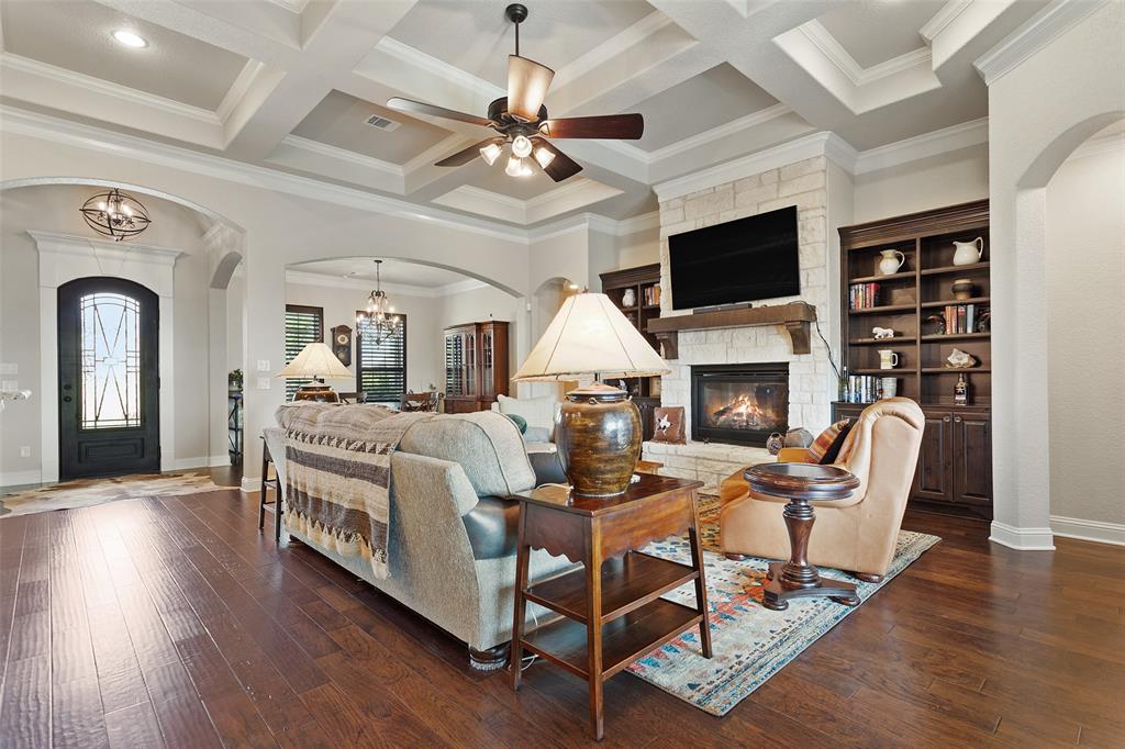 This exceptionally gorgeous 4-bedroom, 3-bath custom home is nestled in a gated community and sprawled out on a Texas-size (1 acre) lot, offering show-stopping curb appeal & custom upgrades - giving the home that WOW factor, while creating a livable showpiece! Upgrades include an iron front entry door, coffered ceilings, and exquisite trim work. The open airy family room & gourmet kitchen provides plenty of space for those large Holiday gatherings & was thoughtfully designed with great indoor-outdoor flow perfect for everyday living & entertaining! This magazine worthy kitchen comes equipped with stainless steel appliances, gas burner cooktop, pot-filler, custom range hood, granite countertops, a breakfast bar, a large island, and a walk-in pantry.