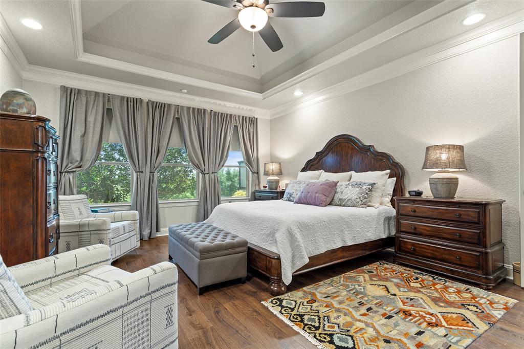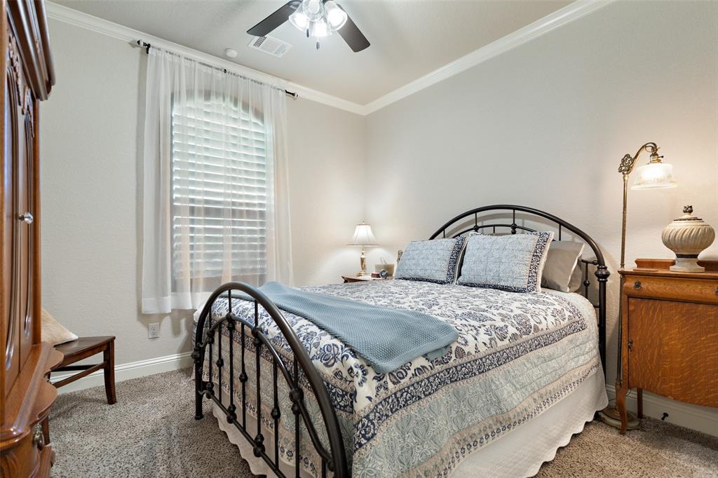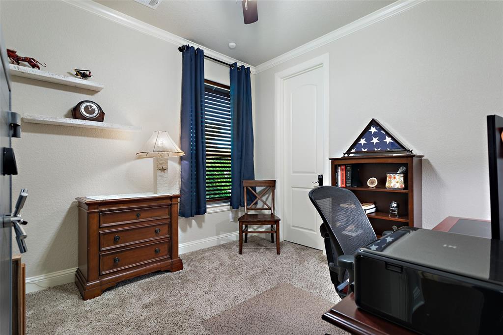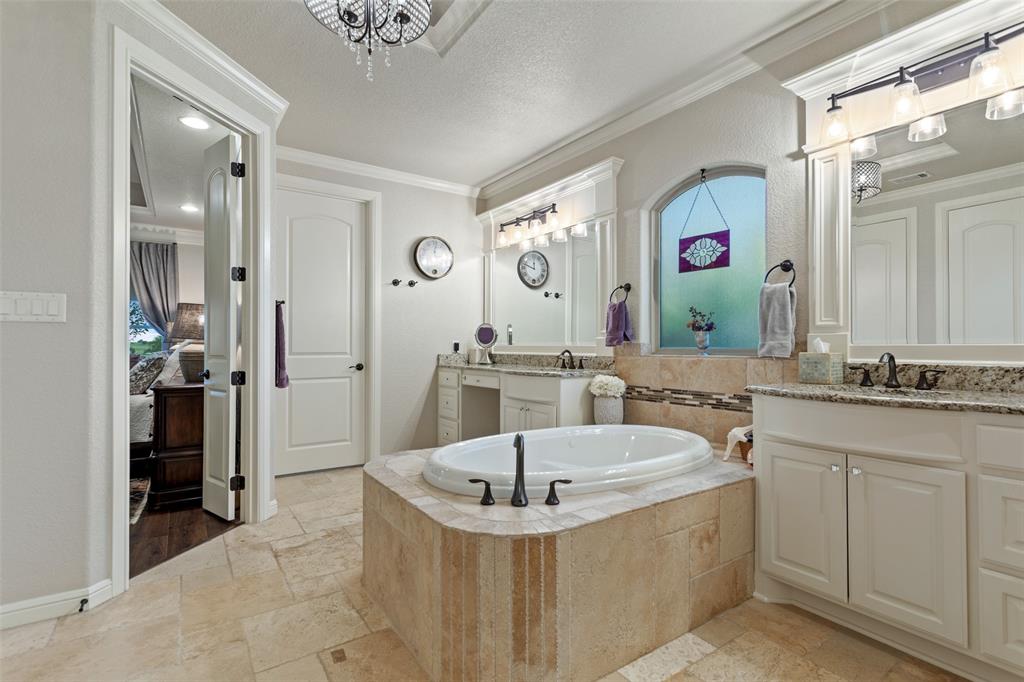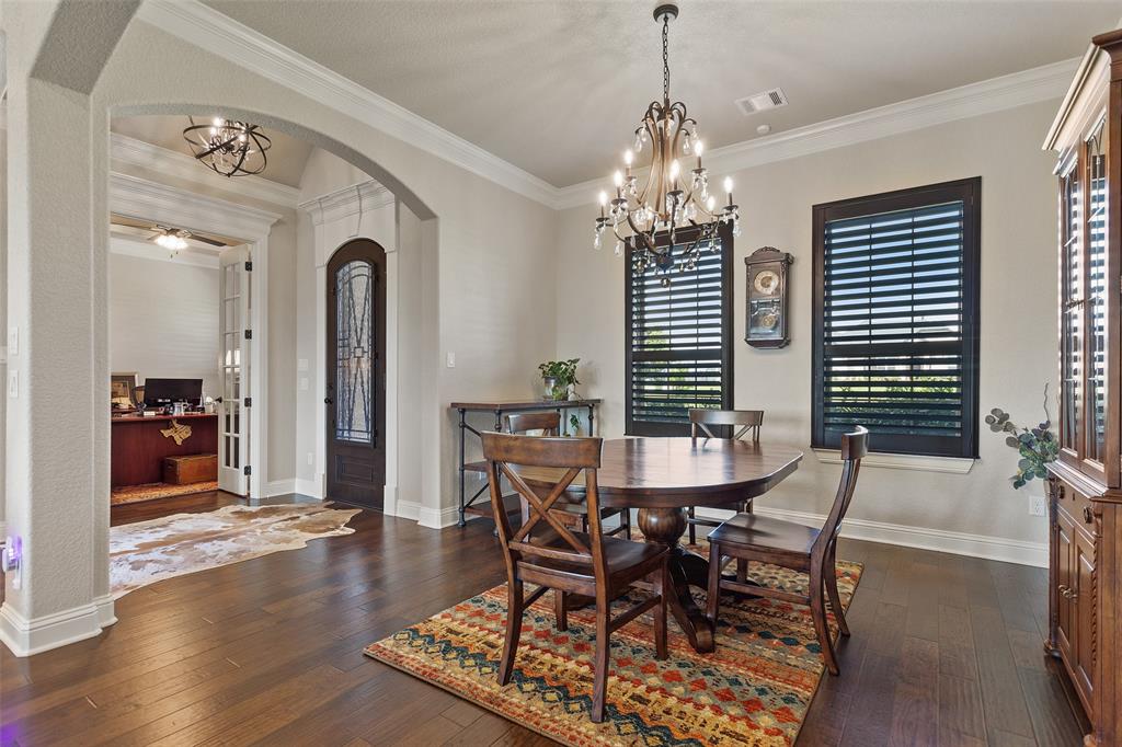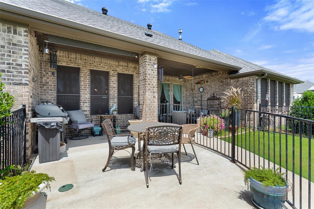 This exceptionally gorgeous 4-bedroom, 3-bath custom home is nestled in a gated community and sprawled out on a Texas-size (1 acre) lot, offering show-stopping curb appeal & custom upgrades - giving the home that WOW factor, while creating a livable showpiece! Upgrades include an iron front entry door, coffered ceilings, and exquisite trim work. The open airy family room & gourmet kitchen provides plenty of space for those large Holiday gatherings & was thoughtfully designed with great indoor-outdoor flow perfect for everyday living & entertaining! This magazine worthy kitchen comes equipped with stainless steel appliances, gas burner cooktop, pot-filler, custom range hood, granite countertops, a breakfast bar, a large island, and a walk-in pantry.