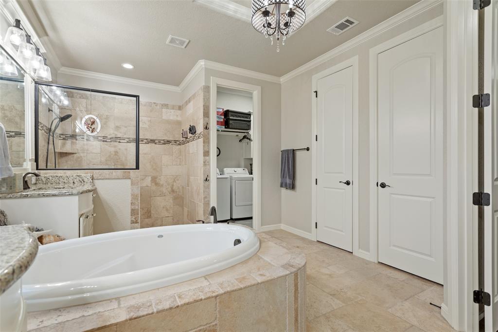 Additional features include a dedicated study with French doors, and a separate formal dining room. The wonderful, spacious bedrooms are complemented by a large primary retreat boasting a walk-in shower, his and hers separate sinks, a Jacuzzi tub, and an oversized closet with direct access to the laundry room - prefect for keeping organized. This expansive backyard will certainly be the setting for many summer soirées!