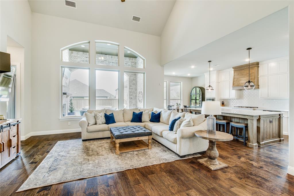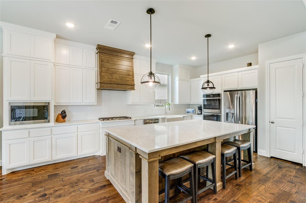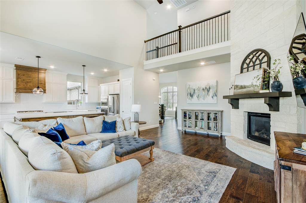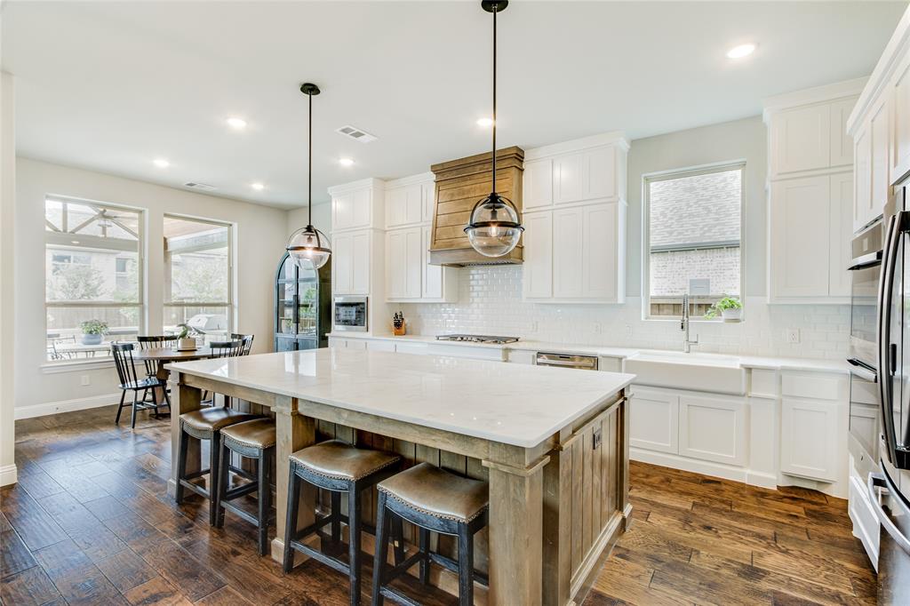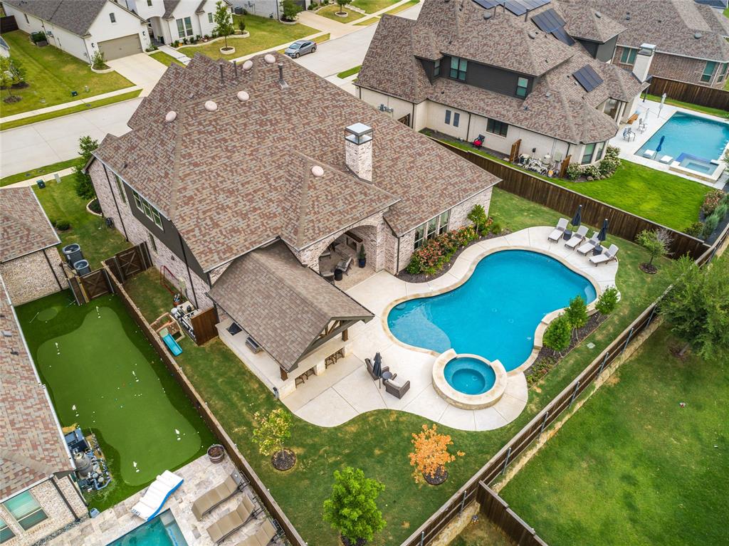 EXQUISITE! This beautiful Highland Home in Argyle ISD that has been so lovingly and gently cared for that it feels better than new. Designed for relaxing entertaining, this fabulous open floorplan will surely delight you as you step beyond the gorgeous front upgraded double doors. So many upgrades and customer customized features! The kitchen and family room will wow you, not only with size, but take look at the high level quartzite countertops, a 19 linear foot walk in pantry, walls of cabinets, all overlooking 20' ceiling Texas sized family room, and then the most spectacular backyard, from the cobblestone covered patio, gas woodburning fireplace, Austin stone spaceious outdoor kitchen, and a huge pebbletec pool, complete with extended tanning ledge, water features, spa, abundant decking for patio furniture, and large grassy areas on this oversized lot-just fabulous! Back inside, enter the private primary suite and walk into a spa like bath, which has been custom designed, take a look at all the built ins, tile accents, free standing tub & more. Also down, you will find a guest bedroom suite, bath, and a another living area, flexible for your guest, perhaps the family media room. Office with solid french doors & window seat make a charming work space. Upstairs are two more spacious bedrooms accented with shiplap, a bath, and gameroom that is tucked away so that all the toys can come out and no one will know! Wonderful Commmunity Amenities including pool, fitness area and club house. This home is a 10++, come see it today, its special!