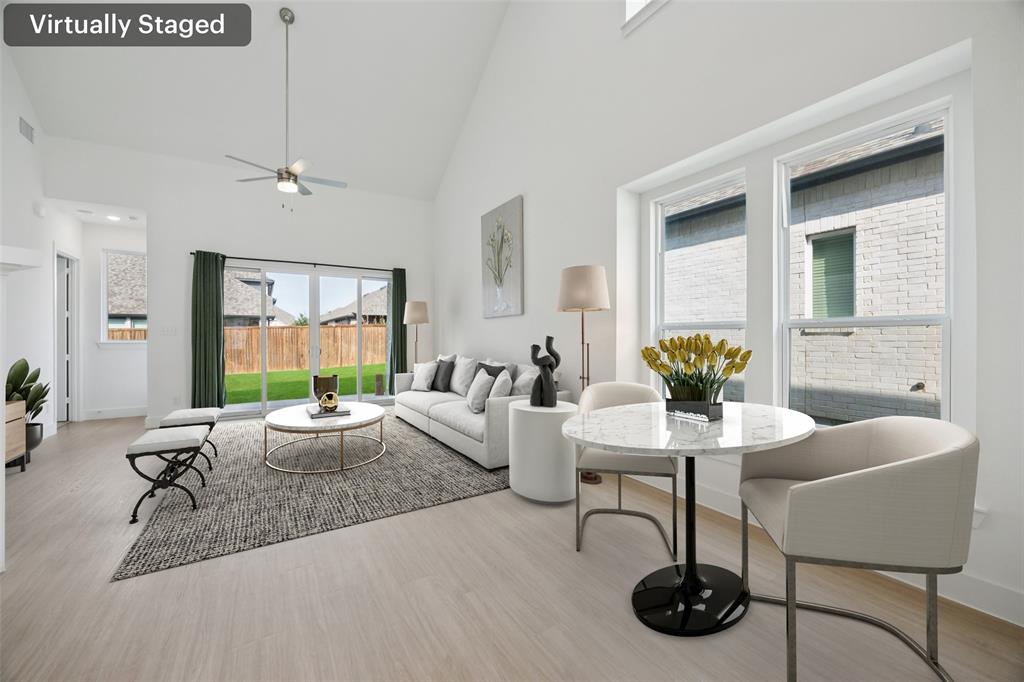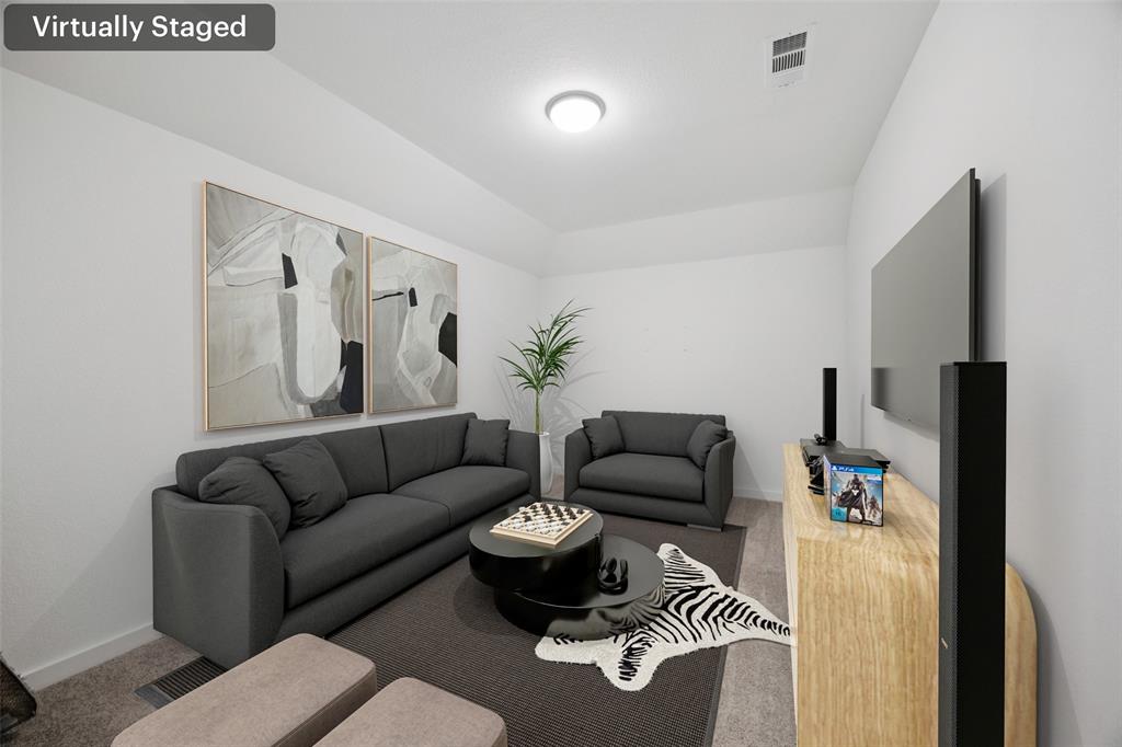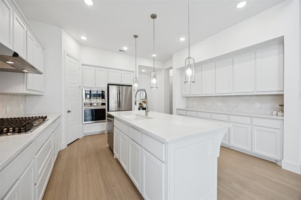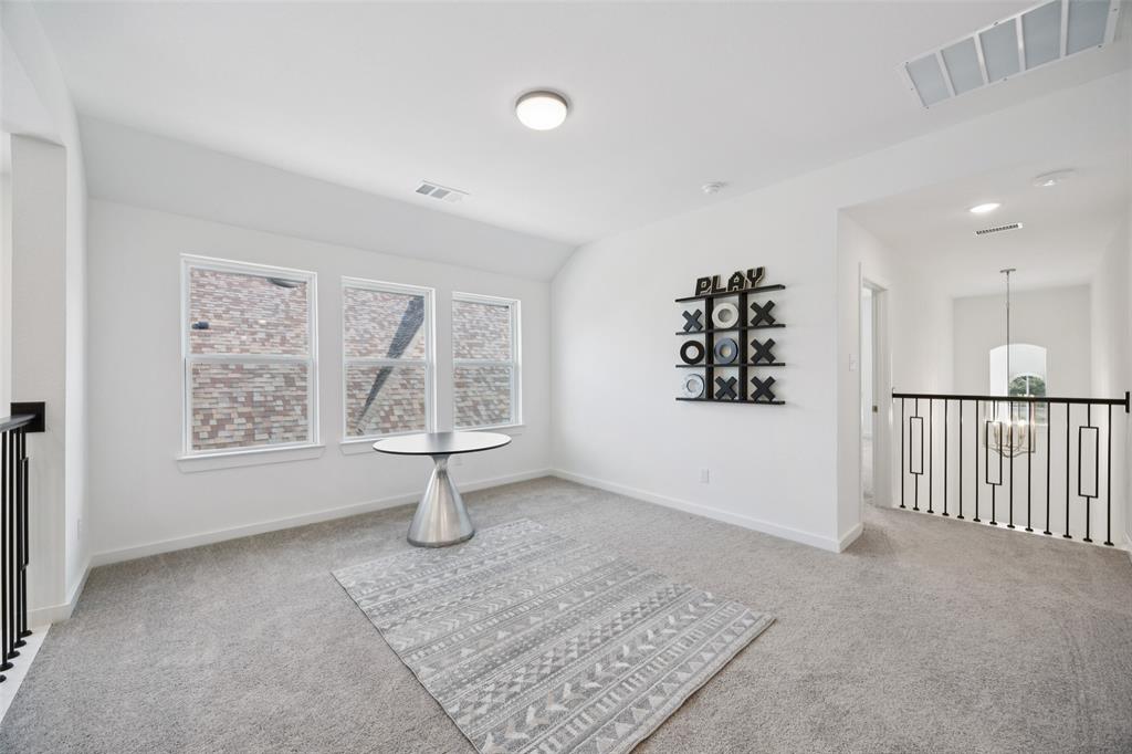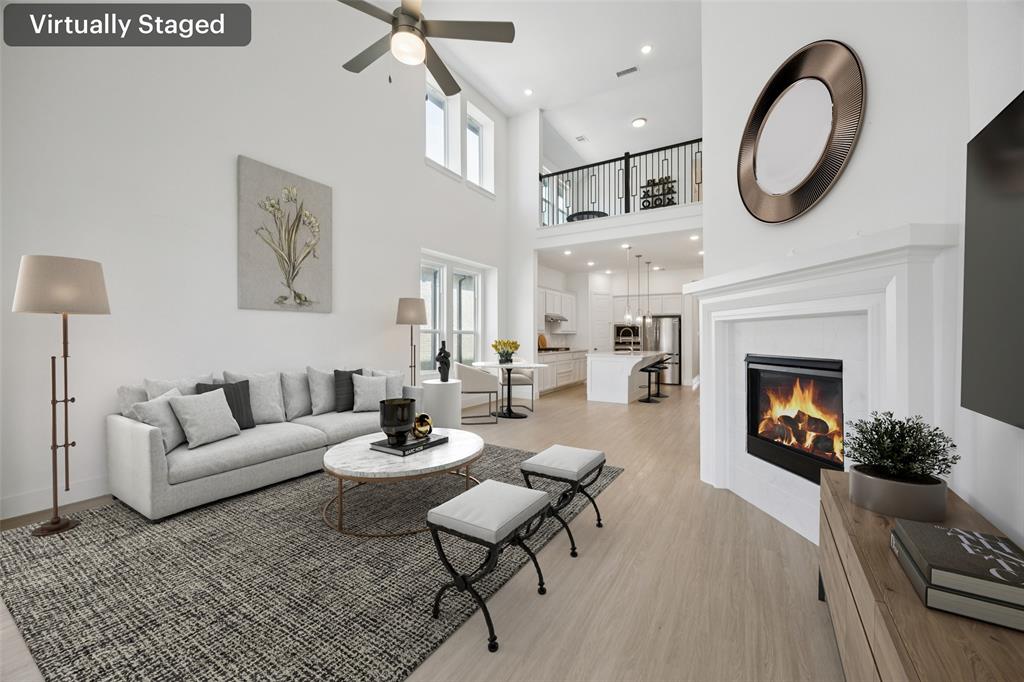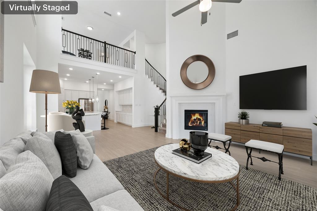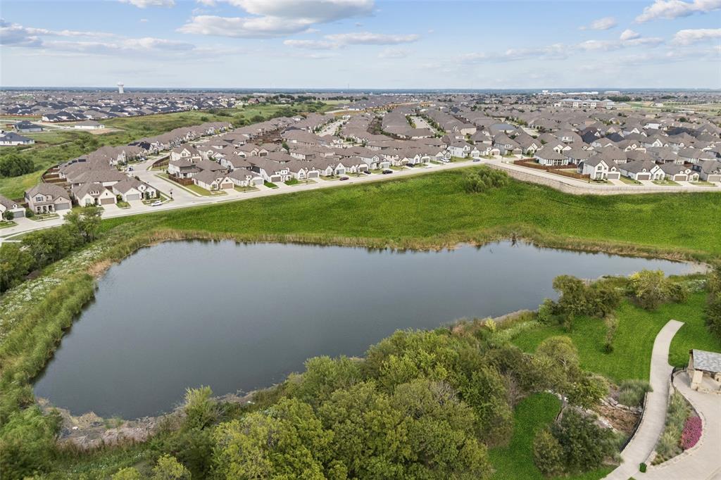 This gorgeous home, built by the prestigious Highland Homes, offers a spacious and thoughtfully designed floor plan with 4 bedrooms, 4 full baths, a private office with double glass doors, and a dedicated media room. Nestled on a beautiful lot with serene views of the Devonshire neighborhood pond, this home combines elegance with functionality. The inviting living room features sliding glass patio doors that seamlessly connect to the covered patio, creating an ideal indoor-outdoor entertaining space. Curved staircase details and soaring ceilings add timeless character to the warm, open layout. The chef’s kitchen is a true highlight, boasting stainless steel appliances, a gas range, an oversized island with breakfast bar seating, crisp white cabinetry, a walk-in pantry, and a designer tile backsplash. Perfectly positioned, it flows effortlessly into the dining and living areas, making gatherings a joy. The thoughtful design includes 2 bedrooms downstairs, plus the office—ideal for working remotely or enjoying a quiet retreat. Upstairs, a large game room, 2 additional bedrooms, and 2 full baths provide plenty of space for family and guests, with one bedroom featuring an ensuite. With modern finishes, abundant natural light, and peaceful water views, this extraordinary home offers the perfect blend of comfort, style, and livability. Schedule your private showing today!