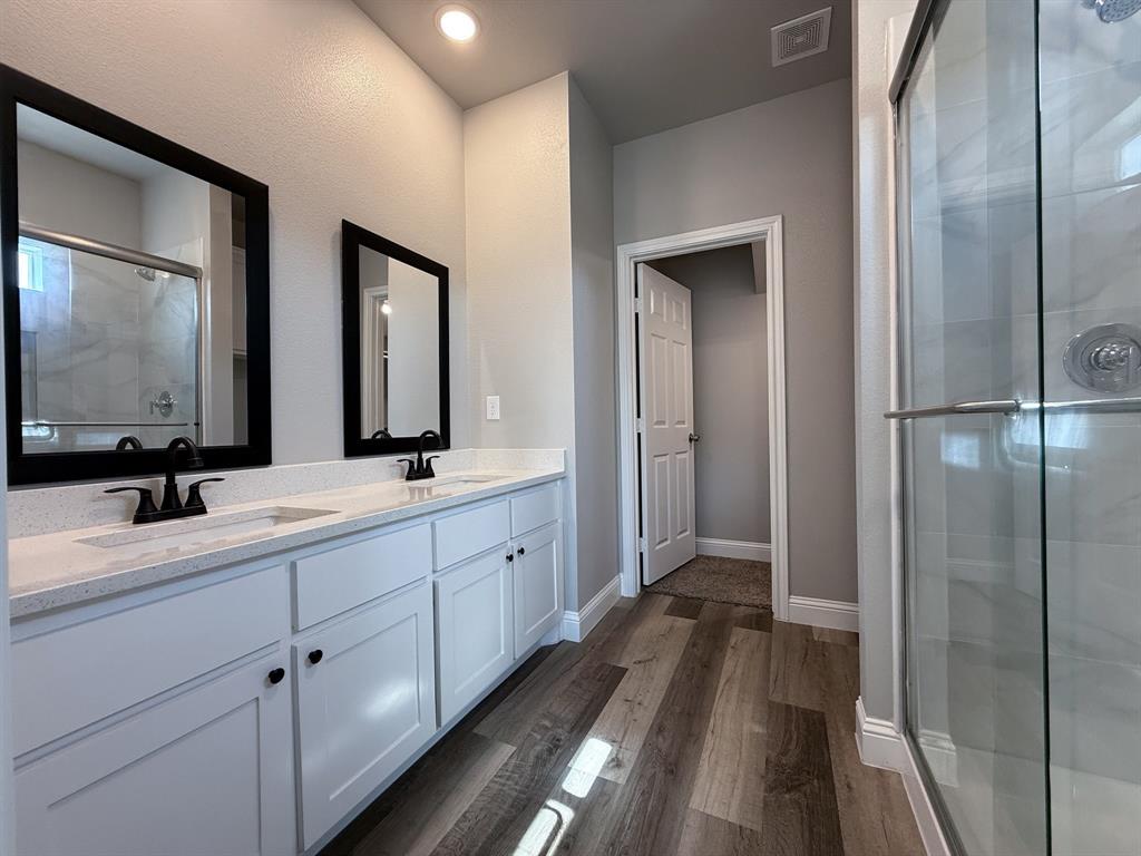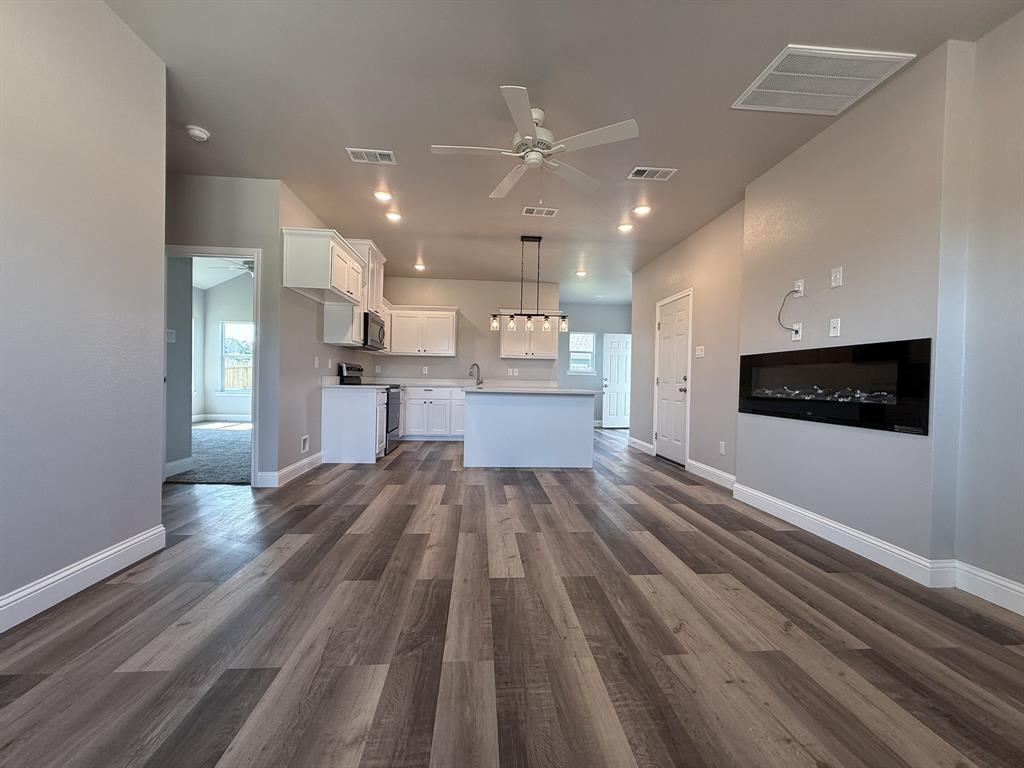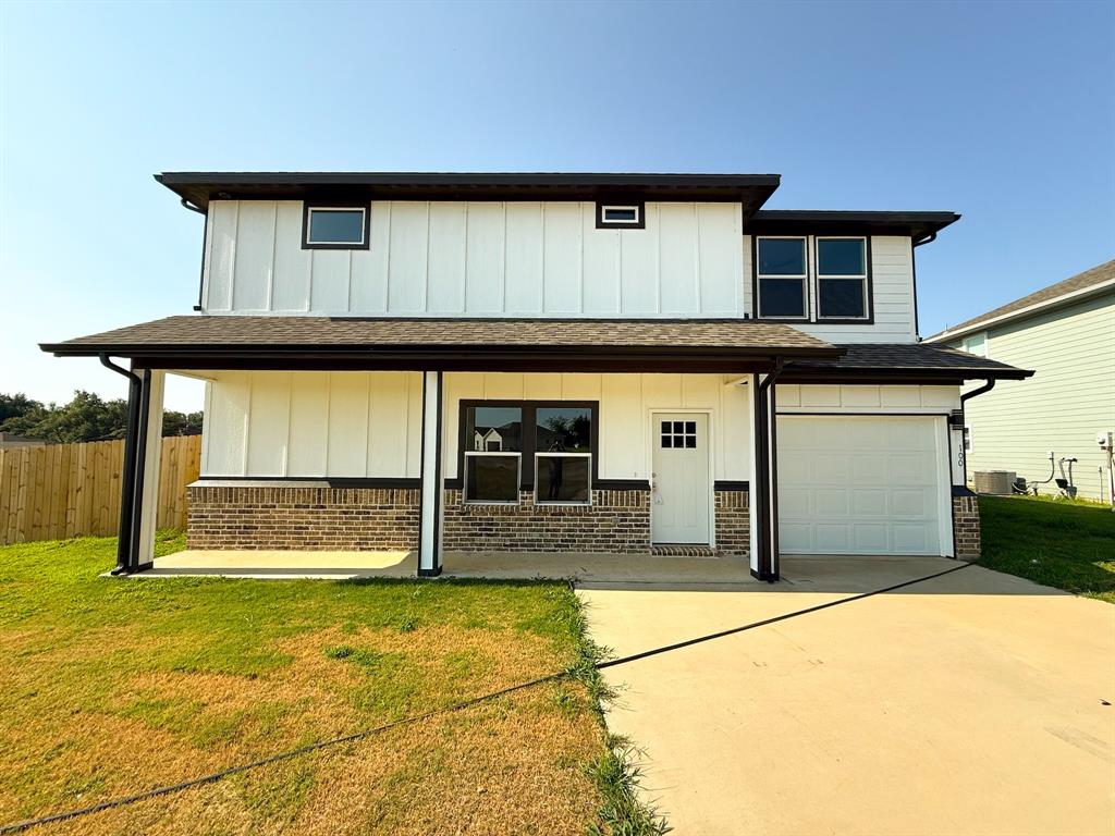 Welcome to this stunning new construction home in the desirable Woodcreek Addition of Sulphur Springs. This 4-bedroom, 2.5-bathroom residence offers an open floor plan with vaulted ceilings, luxury vinyl plank flooring, and abundant natural light. The spacious kitchen features granite counters, a large island, custom cabinetry, and a walk-in pantry—perfect for entertaining or family gatherings. The primary suite boasts dual sinks, an ensuite bath, and a walk-in closet. Enjoy cozy evenings by the electric fireplace in the living room or relax on the covered front and rear porches. Located close to schools, shopping, and dining, this home combines comfort, style, and convenience. DID I MENTION THE HUGE GORGEOUS CORNER LOT ?