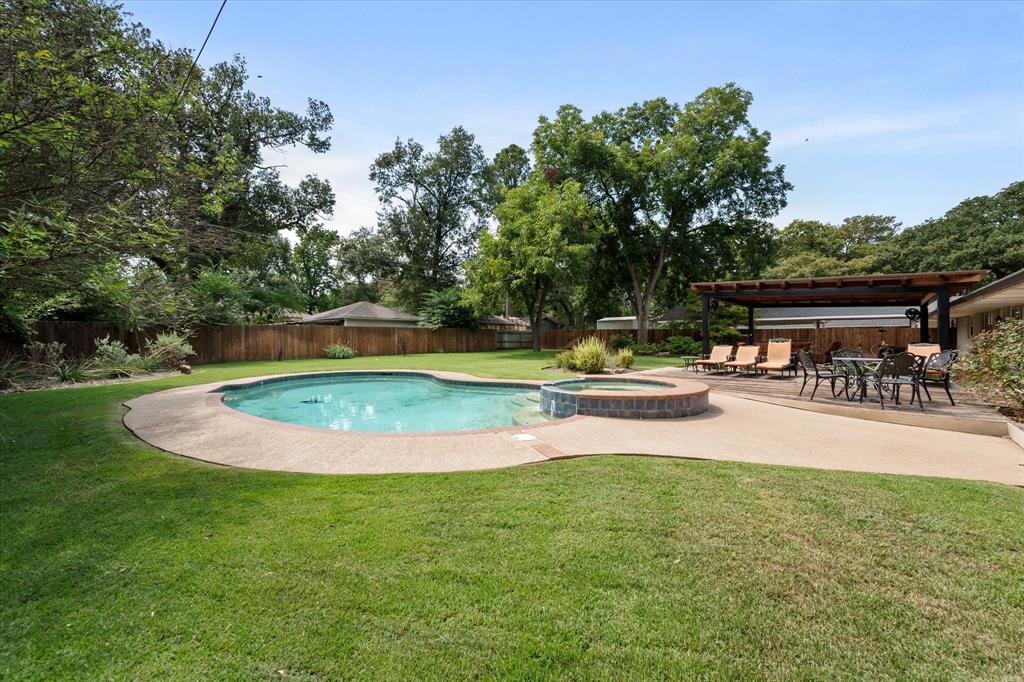 Welcome to this beautifully maintained home featuring a bright and inviting layout designed for comfort and entertaining. Nestled on a picturesque street, this residence boasts stunning curb appeal with a lush front yard and mature landscaping. Inside, multiple living and dining areas provide flexibility, while large windows invite in natural light and showcase serene backyard views. Step outside to your private backyard oasis, complete with a sparkling pool, covered patio, and plenty of green space to relax or entertain. The backyard is as beautiful as the front, with manicured flower beds and room to enjoy. This 3-bedroom, 3-bath home combines comfort, character, and outdoor living in one of the area’s most desirable locations.