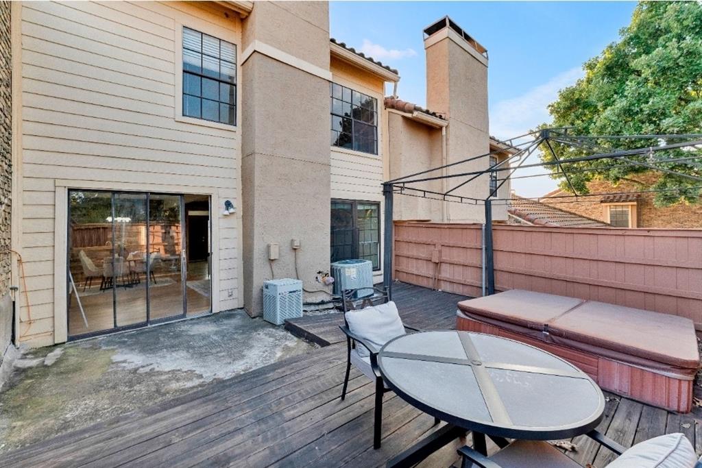 The downstairs half bath is ideal for visitors, while the converted garage provides a versatile bonus space — perfect as a guest room, playroom, or home office. Step outside to your private fenced patio, complete with a relaxing hot tub, perfect for unwinding after a long day.