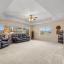 The main level features soaring ceilings and hardwood flooring that flow into a spacious living room, formal dining, and a dedicated office at the front of the home, ideal for remote work or study. A chef’s kitchen with gas cooktop, double ovens, and central island connects seamlessly to the breakfast nook, making entertaining effortless. The first-floor primary suite provides true retreat living, complete with a spa-inspired bath and walk-in closet. Two additional bedrooms downstairs create flexibility for family or guests, while upstairs a large game room and secondary bedroom offer the perfect space for kids, visitors, or a media lounge.