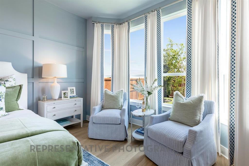 The luxury kitchen is a chef’s dream, featuring a classic center island, sleek Level 4 quartz countertops, brushed gold cabinet hardware, and undercabinet lighting that highlights every detail. An upgraded lighting package and premium door hardware add an elevated touch of style throughout the home.