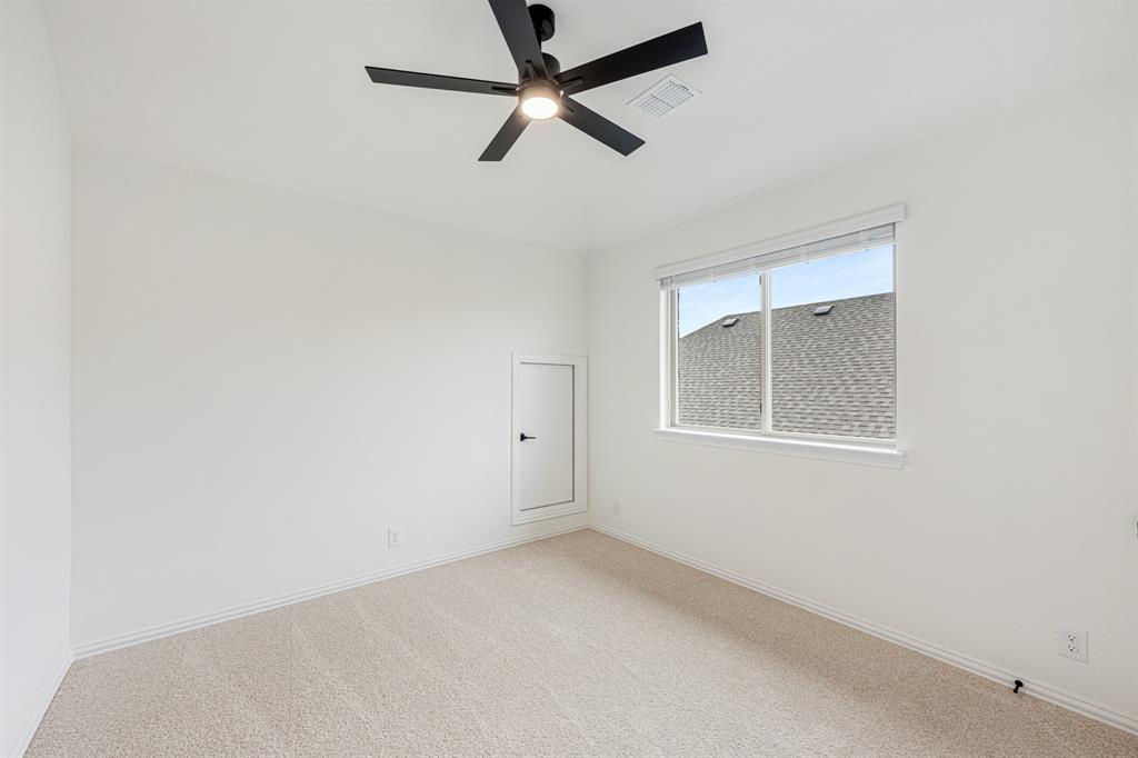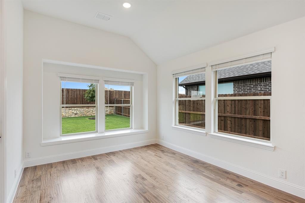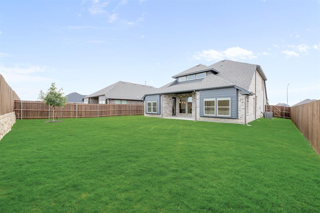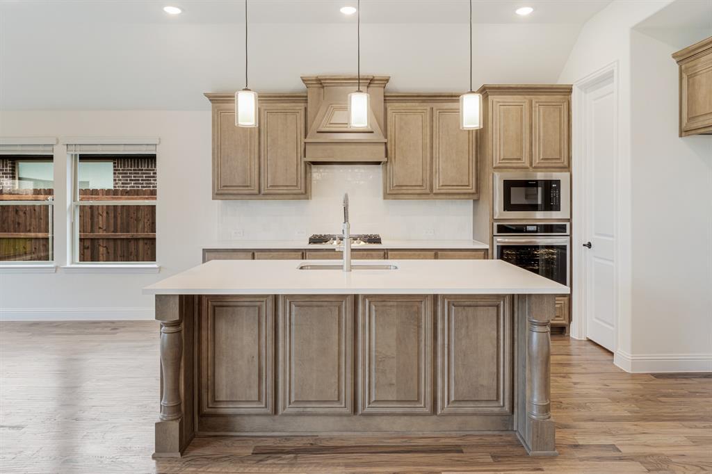 NEW & NEVER LIVED IN! The Violet II by Bloomfield Homes is a thoughtfully designed two-story home that blends open living spaces with private retreats, offering 5 bedrooms, 4 full baths, and a 2-car deep garage on an oversized interior lot with a striking brick elevation accented by herringbone details. Inside, the wide foyer and upgraded 8’ front door set an inviting tone, leading into an open Family Room with tall ceilings, abundant natural light, and a striking upgraded stair rail with rod iron accents that overlook from the Game Room above. The Deluxe Kitchen is the true heart of the home, featuring upgraded painted cabinets with a pull-out trash can, quartz countertops, a raised panel back at the island, an upgraded faucet, designer tile backsplash, a walk-in pantry, and built-in stainless steel appliances, including a gas cooktop and wood vent hood, all illuminated by 3 pendant lights over the island. The first floor also offers a Bedroom Suite at the front, a Study that has been converted to a 5th Bedroom with full bath, and a private Primary Suite tucked at the back of the home with dual vanities, separate tub and shower with upgraded tile surround, and a large walk-in closet. Upstairs is designed for entertaining with a spacious Game Room that connects to the Media Room through double doors, plus 2 additional bedrooms. Throughout the home you’ll find thoughtful upgrades including site-finished wood floors from the entry to the Family Room, upgraded tile flooring in utility and baths, semi-frameless shower glass at the powder bath, and 2-inch faux blinds. Outdoor living is just as inviting with a covered porch, covered patio featuring a gas drop for your grill, full gutters, and professional landscaping. Located in the Wildflower Ranch community, residents enjoy resort-style amenities including a lazy river, playground, and trails,. Call or visit Bloomfield at Wildflower Ranch in Justin area to learn more today!