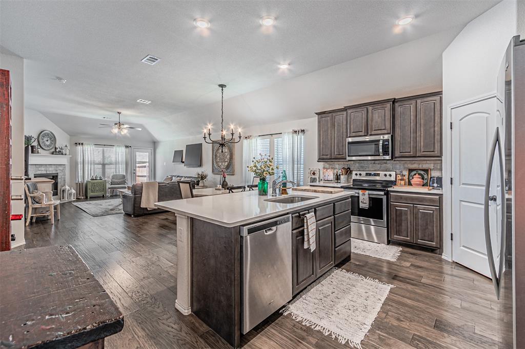 Welcome to this beautiful 3 bedroom, 2 bathroom home with a dedicated office or flexible dining space, built in 2019 by Antares Homes in the desirable Heights of Weatherford Estates. This thoughtfully designed floor plan offers a welcoming entry with natural light, a spacious living area, and an open kitchen featuring quartz countertops, a large island, stainless steel appliances, and custom cabinetry.