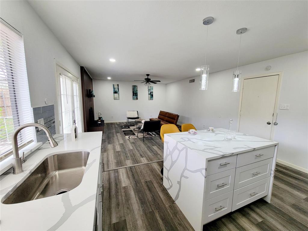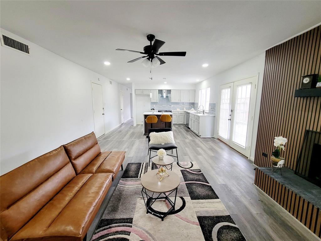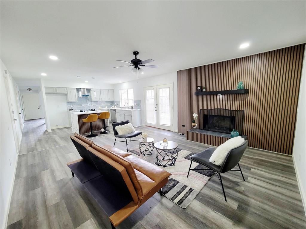 Beautifully Renovated Ranch-Style Home Just 20 Minutes from Downtown Dallas! Welcome to this stunning one-story ranch-style home, thoughtfully updated and move-in ready! As you step inside, you're greeted by a spacious vaulted-ceiling living room that seamlessly flows into the formal dining area — perfect for entertaining. The chef’s kitchen is a dream come true, featuring brand-new quartz countertops, a large eat-in island, new tile backsplash, stainless steel appliances, and a modern vent hood. The kitchen opens directly to the living room, where a contemporary fireplace serves as the centerpiece for cozy evenings and lively gatherings.