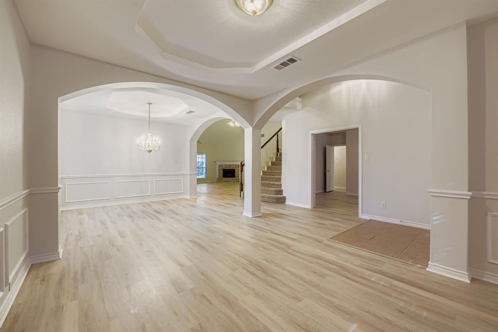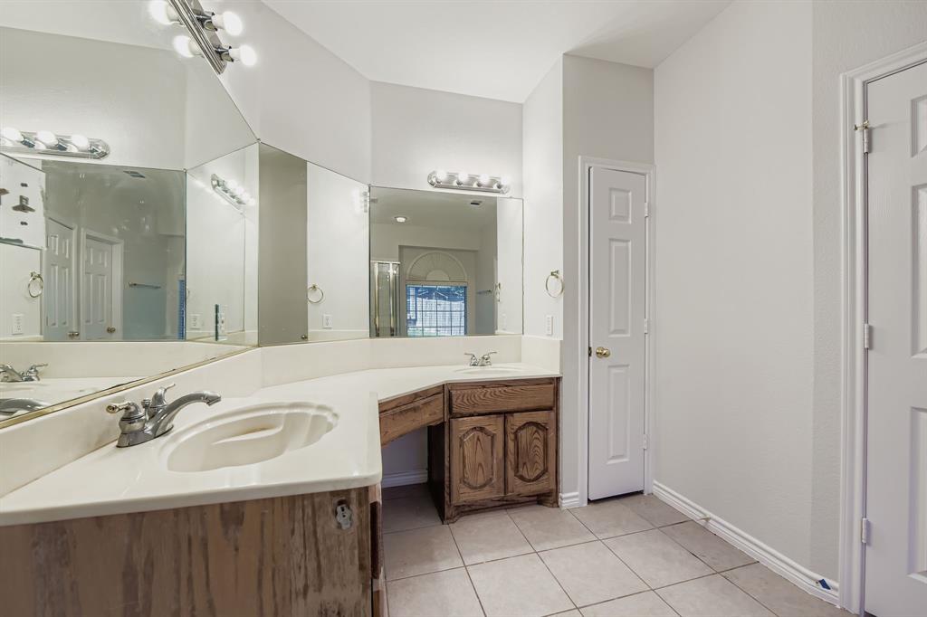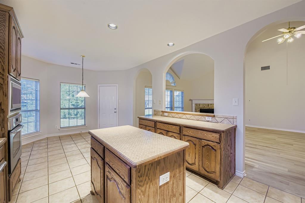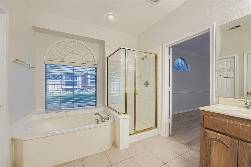 Welcome to this beautiful Glenn Heights home featuring a formal sitting room and dining room, perfect for entertaining. The large living room showcases a cozy fireplace, while the kitchen offers a center island, breakfast nook, and bar seating open to the living space, making it ideal for gatherings. The primary suite provides a luxurious retreat with dual sinks, a sitting area at the vanity, a soaking tub, separate walk-in shower, and a spacious walk-in closet.