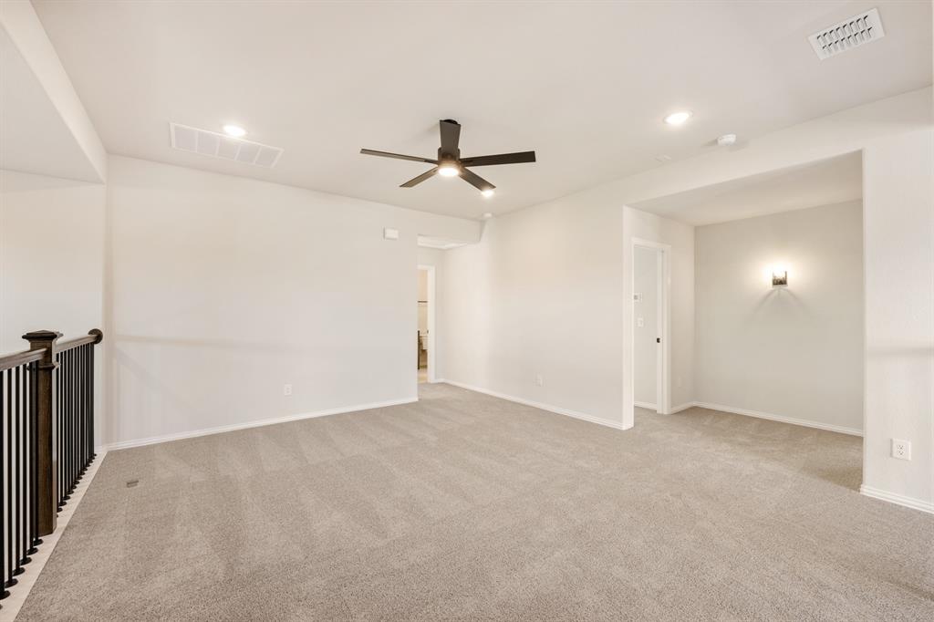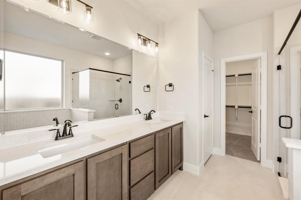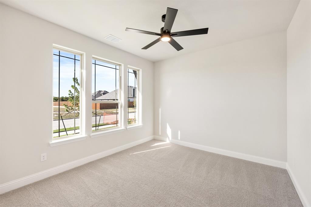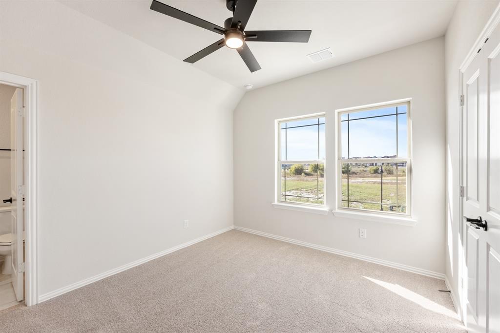 NEW! NEVER LIVED IN! Available November 2025! The Violet IV by Bloomfield Homes is a spacious two-story plan offering 4 bedrooms, 3.5 baths, and a 2-car garage, showcasing a striking brick exterior with gabled rooflines that add timeless charm. Step through the upgraded 8’ front door into a wide foyer that sets the tone for the open-concept layout. Wood floors flow throughout the main level, connecting the front entry to the Family Room, which features a dramatic raised ceiling with open railing to look down over into the Family Room below. The Deluxe Kitchen is designed for both style and function, complete with an island and undermount sink, built-in stainless steel appliances, custom cabinetry, and a large walk-in pantry. A casual dining space sits just off the kitchen with direct access to the extended covered patio, making indoor-outdoor entertaining effortless. The first-floor Primary Suite offers a private retreat with a large walk-in closet and ensuite bath featuring dual sinks, a garden tub, and a separate shower. A Study with the option to serve as a 5th Bedroom and a Powder Bath add flexibility downstairs. Upstairs, a Game Room with open railing overlooks the Family Room, and 3 secondary bedrooms are spread out for privacy—two with an ensuite bath, while the third is located near its own bath. A Media Room provides the perfect setting for movie nights or game day gatherings. Additional highlights include window seats, a full laundry room with mudbench, cedar garage doors, and thoughtful storage throughout. The Violet IV offers modern design, flexible spaces, and great curb appeal—tour it today at North Grove in Waxahachie!