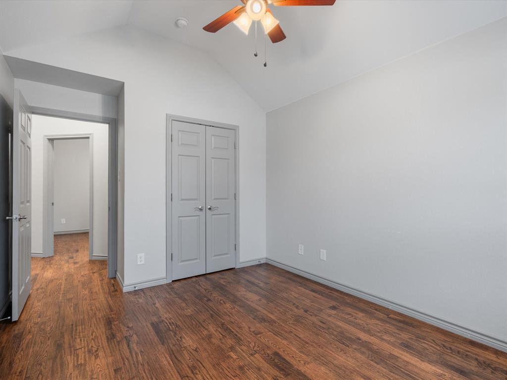 The thoughtfully designed layout ensures that the secondary bedrooms are conveniently separated from the master suite. Each bedroom offers generous closet space and ceiling fans for added comfort. The master suite, located on the opposite side of the home, is a true retreat with beautifully vaulted ceilings, a ceiling fan, and a luxurious master bath featuring double vanity sinks, a garden tub, and a separate walk-in shower. The expansive walk in closet is equipped with built-in shelves, providing all the organization you need.