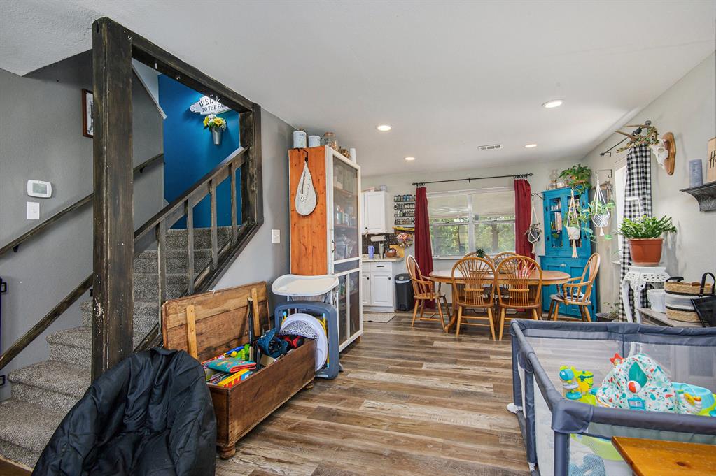 Upstairs, you'll find two generously sized bedrooms and a fully remodeled bathroom. The cozy living room flows seamlessly into the dining area and kitchen, creating the perfect space for family gatherings or entertaining guests.