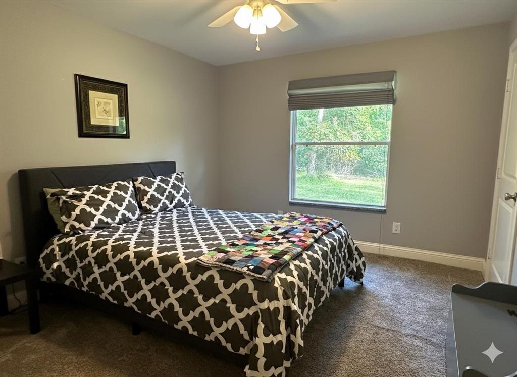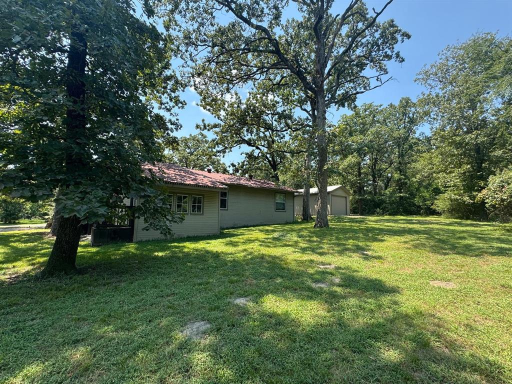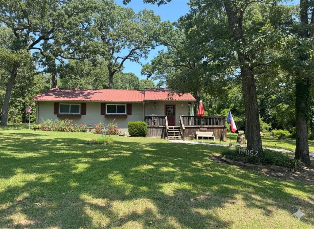 Welcome to your Cedar Creek Lake retreat in a gated lake community with HOA amenities, paved roads, and a convenient boat launch. This charming 3-bedroom, 2-bath cabin-style home is offered Fully Furnished, sits on multiple lots and offers a perfect blend of rustic charm and modern updates. Renovated approximately five years ago, the home features a metal roof, vinyl siding, and a rock driveway leading to a unique pull-through garage designed for boat storage, complete with dual roll-up doors and electric openers. Step inside to a warm and inviting interior, where laminate wood flooring in a taupe tone and an electric fireplace create a cozy atmosphere. Expansive picture-frame windows overlook the deck and capture a peaceful partial lake view. The large wood deck is perfect for entertaining or simply enjoying the outdoors. The all-new kitchen is a showstopper, boasting granite countertops, glass tile backsplash, stainless steel appliances, dual sink, and breakfast nook. A convenient mudroom with washer and dryer, futon, and outside access adds functionality. The primary suite is spacious enough for a king bed and includes a walk-in closet with a rustic barn door and a luxurious walk-in shower. Two guest bedrooms offer comfort with carpet underfoot, and the hall bath provides a tub-shower combo accented with stylish glass tile. Whether you’re seeking a weekend getaway or a full-time residence, this fully furnished lakeside cabin offers easy access to the water, plenty of storage for your boat, and the charm of lake community living.